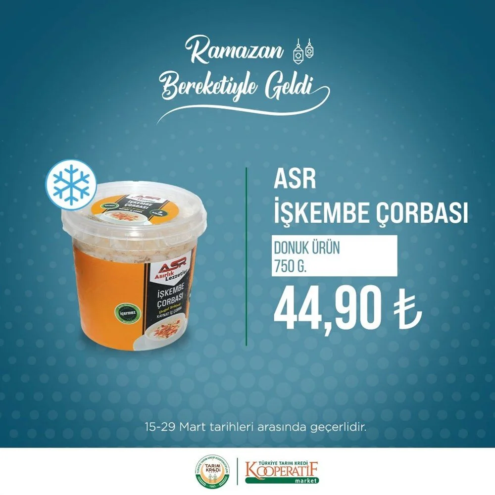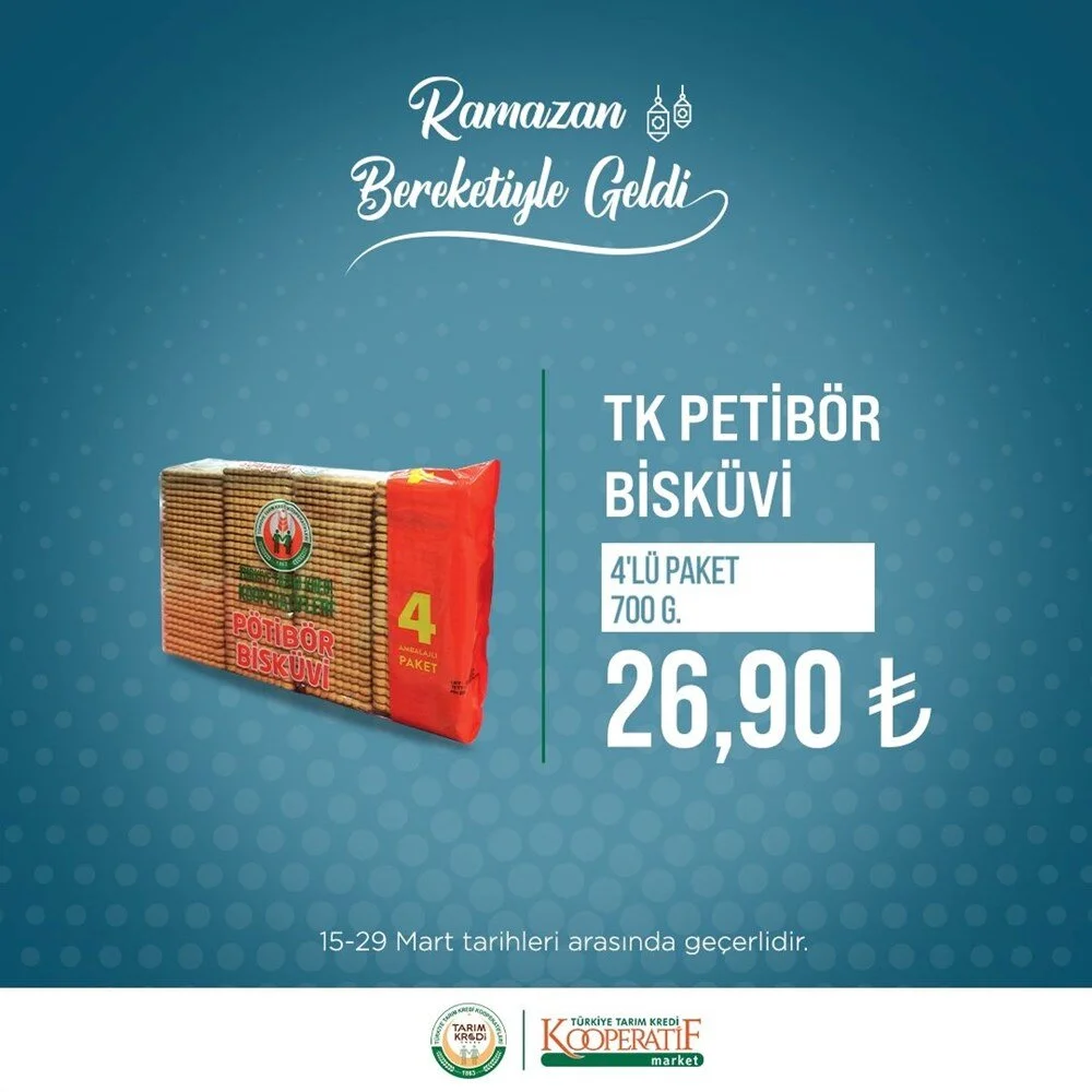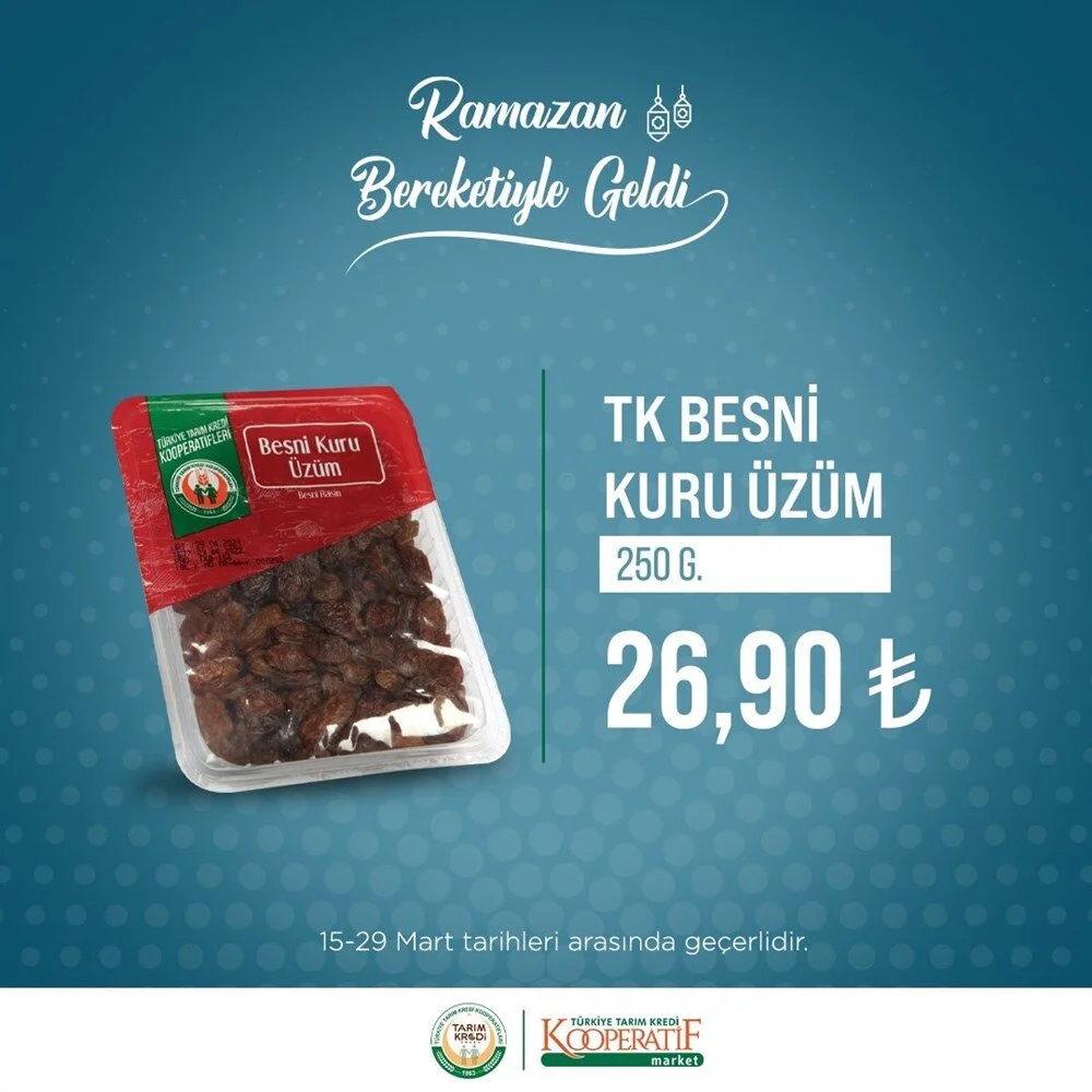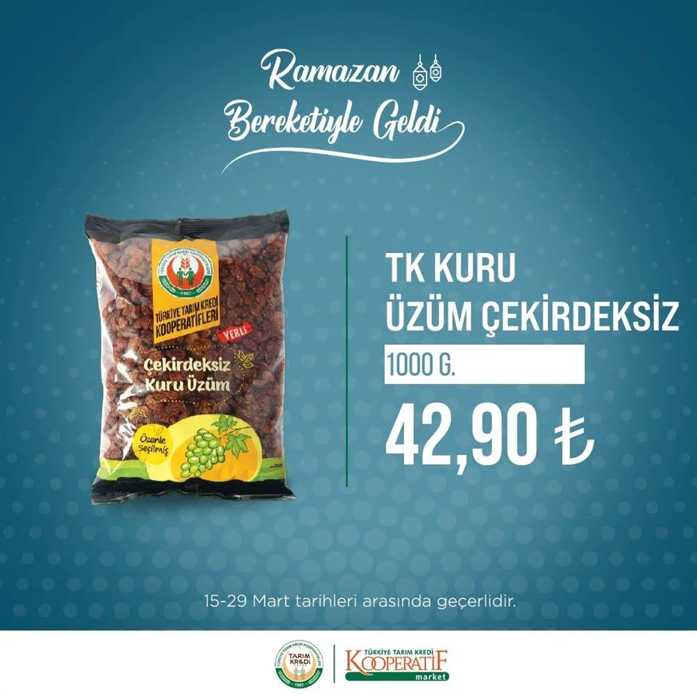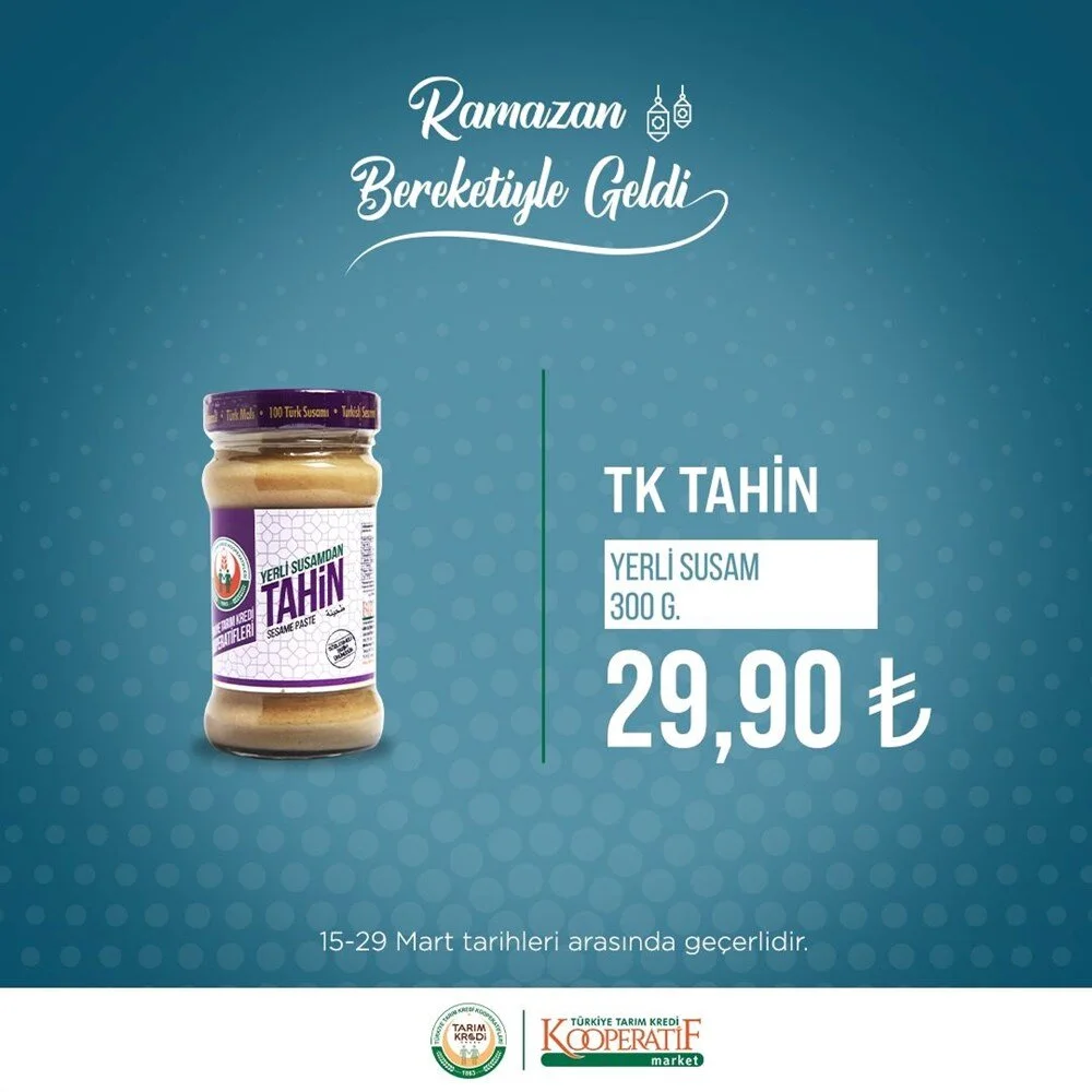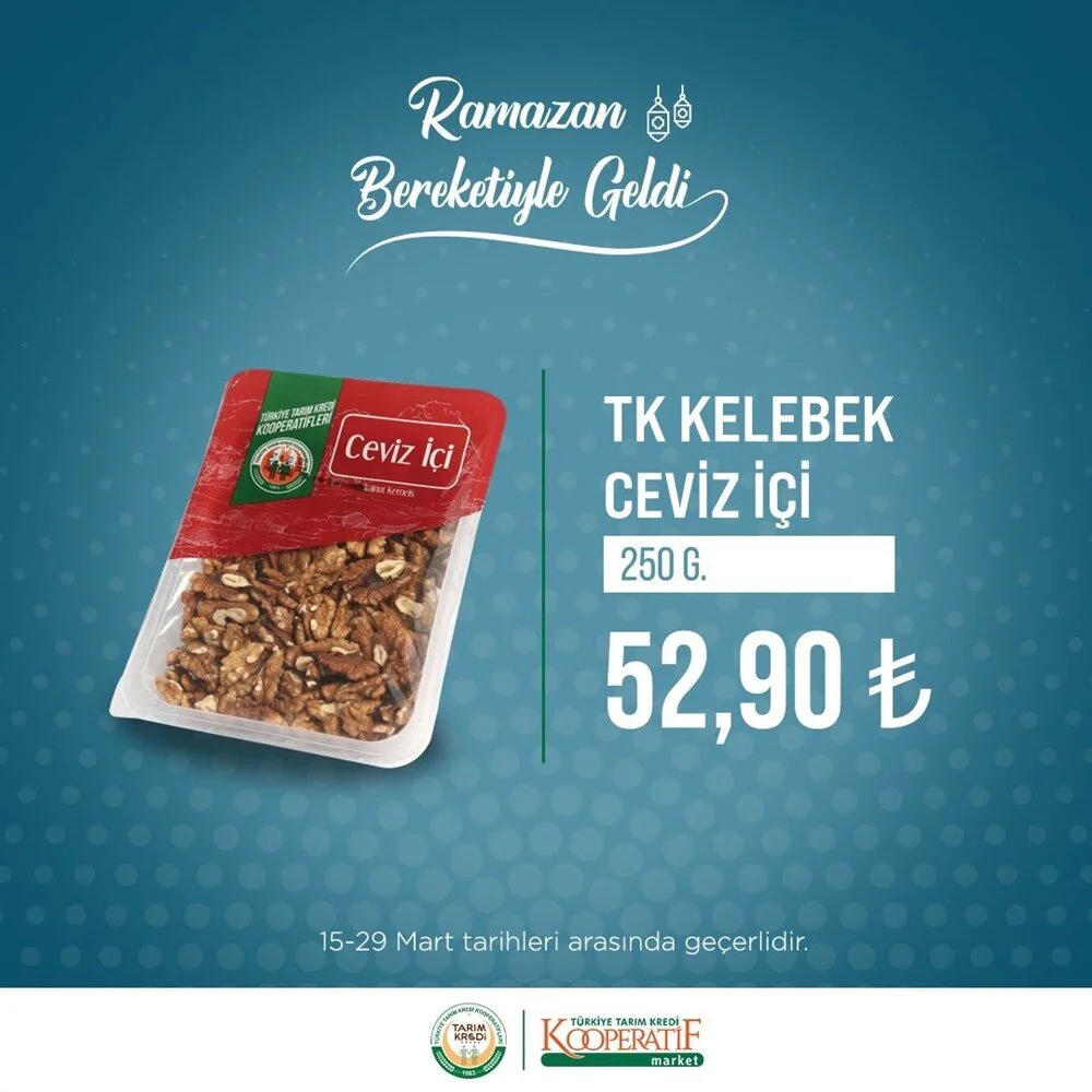 Tarım Kredi Kooperatif Marketleri'nde Ramazan ayına özel güncel indirimli ürünler listesi yayınlandı. Ramazan ayı boyunca 15'er günlük indirimler bayrama kadar sürecek. İşte indirimli ürünlerin listesi