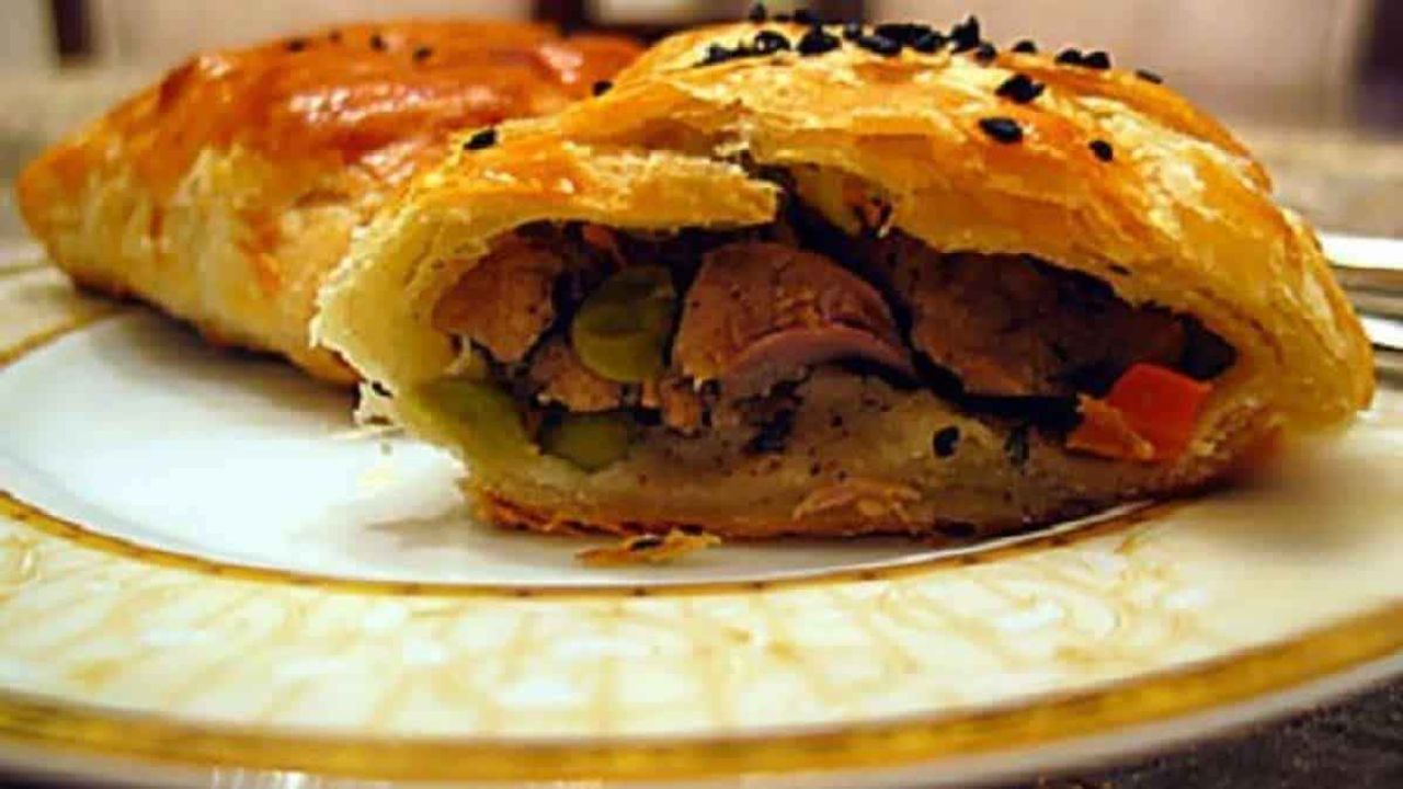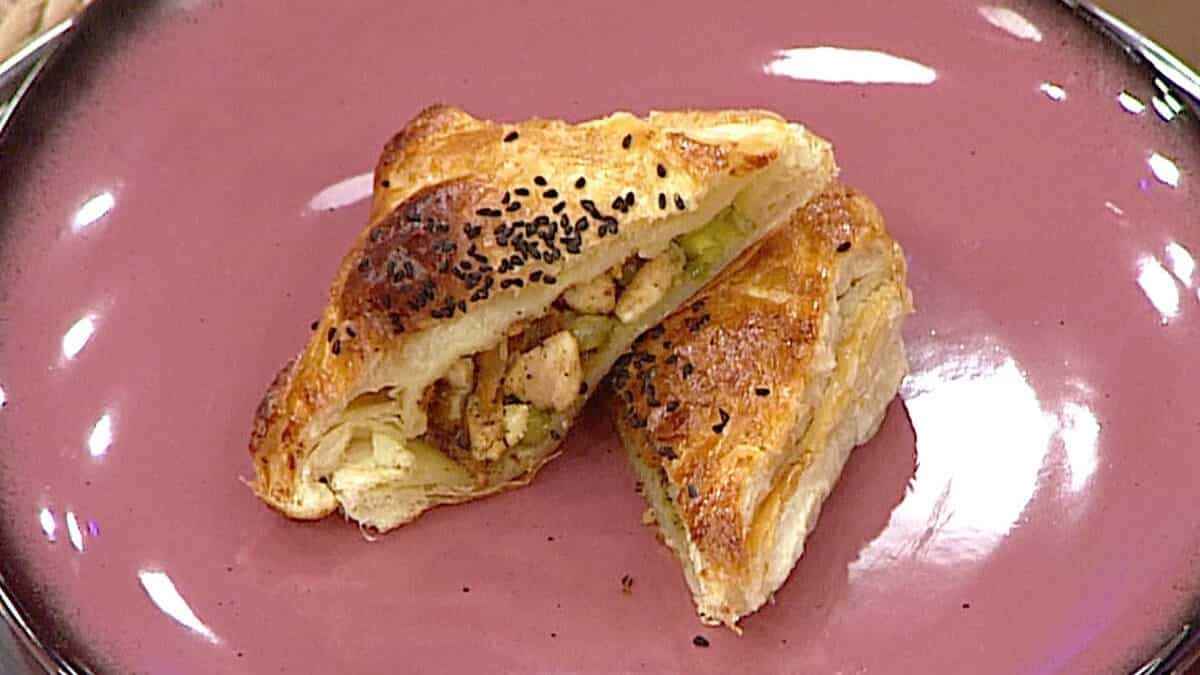 Ardından yemeklik doğranmış havuç, soğan, biberler ve sarımsağı aynı tavaya ekleyip çevirin. Mühürlediğiniz tavuklar, bezelye, tuz ve karabiberi ekleyip karıştırıp kenara alın. Her bir kare milföy hamurunun içine tavuklu iç harçtan yerleştirip köşelerden üst üste kapatın. Kapattığınız kısım alt kısma gelecek şekilde fırın tepsinize yerleştirin.