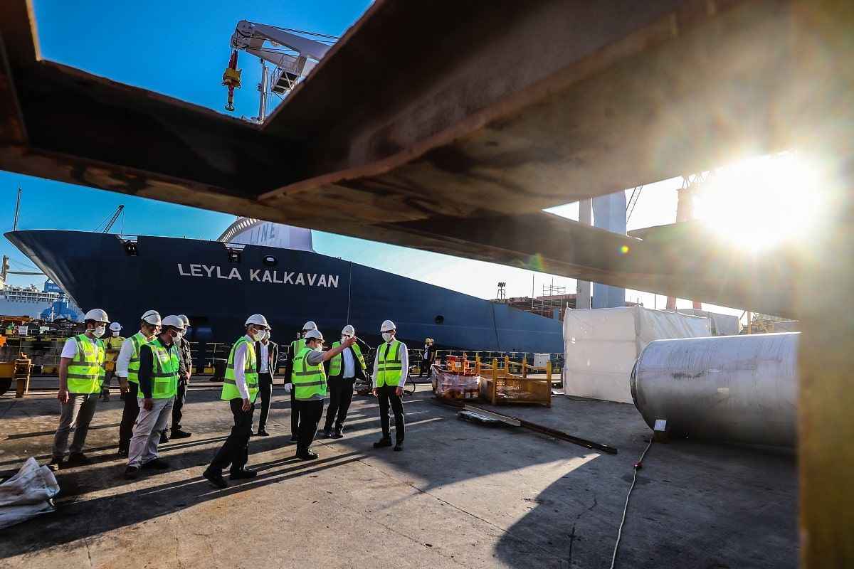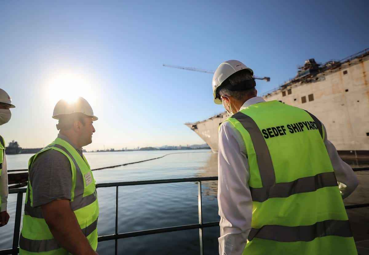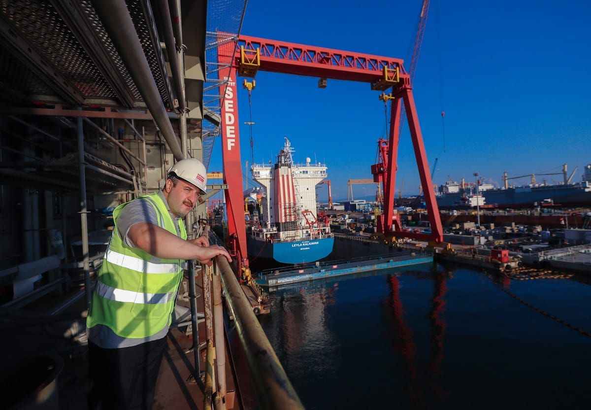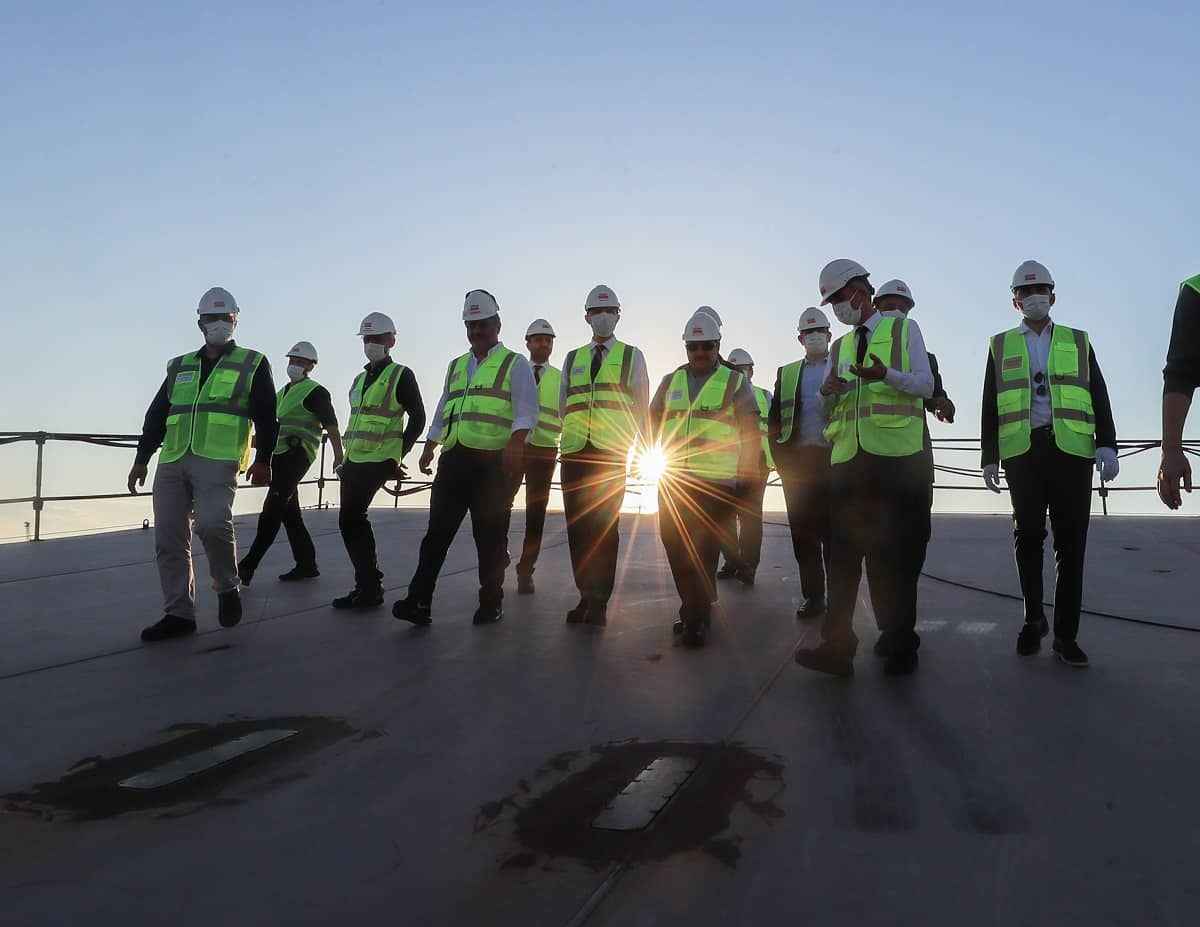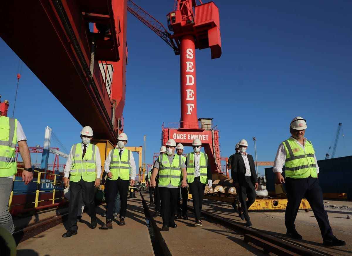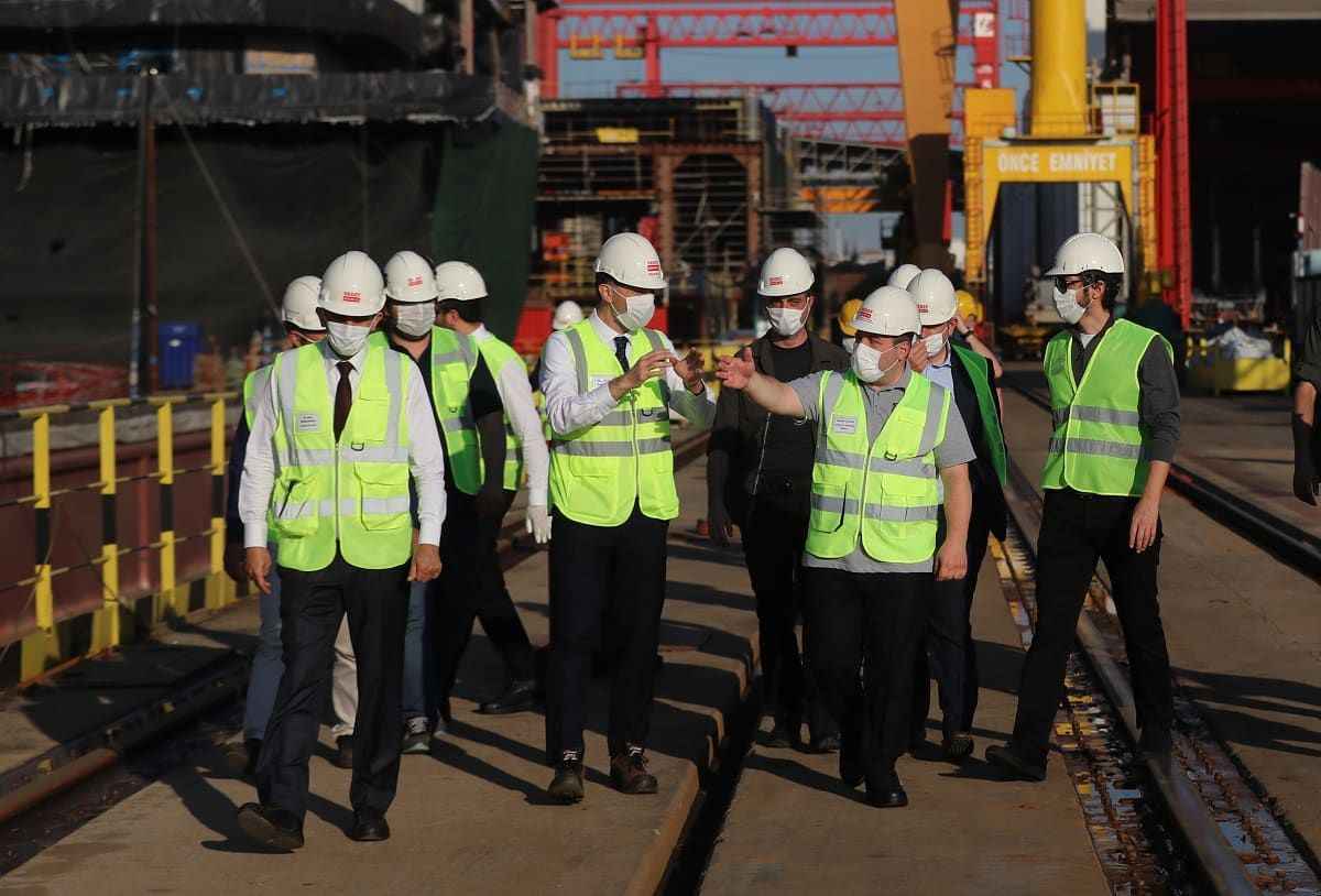 Bakan Varank, Tuzla Sedef Tersanesi'ne gerçekleştirdiği ziyarette, Türkiye'de üretilen en büyük geminin yapım çalışmaları hakkında bilgi aldı.