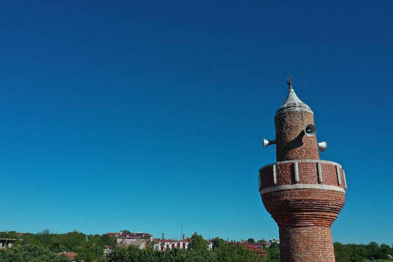 Tuğla ve kesme taş malzemeyle kare plan şeklinde yapılan cami zamana meydan okuyor.