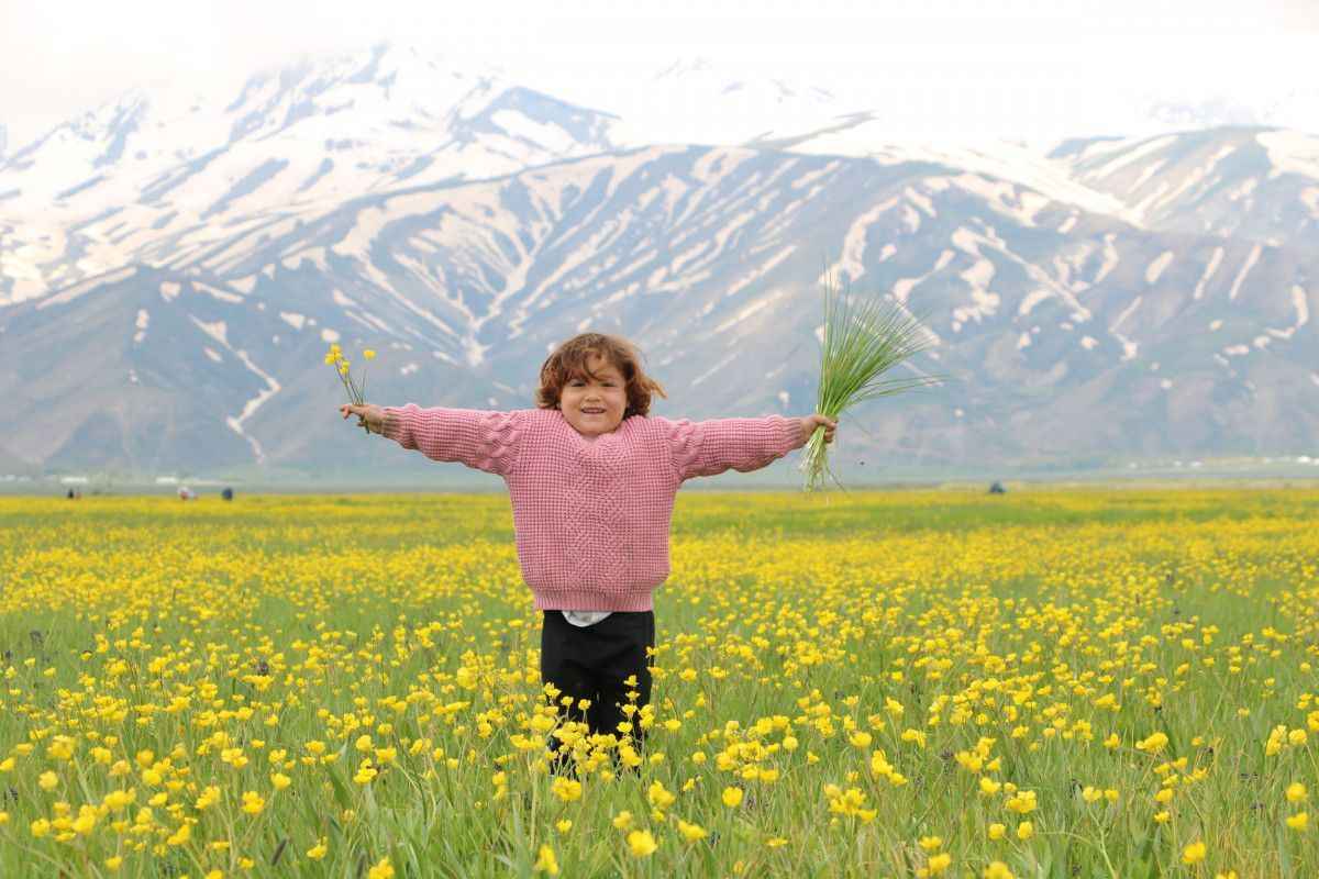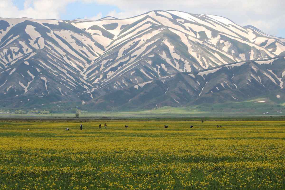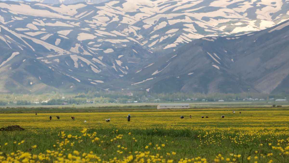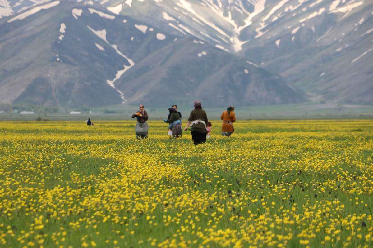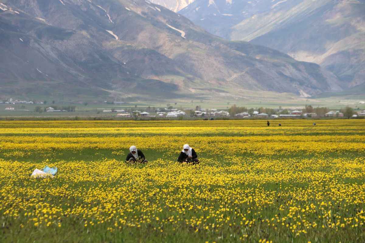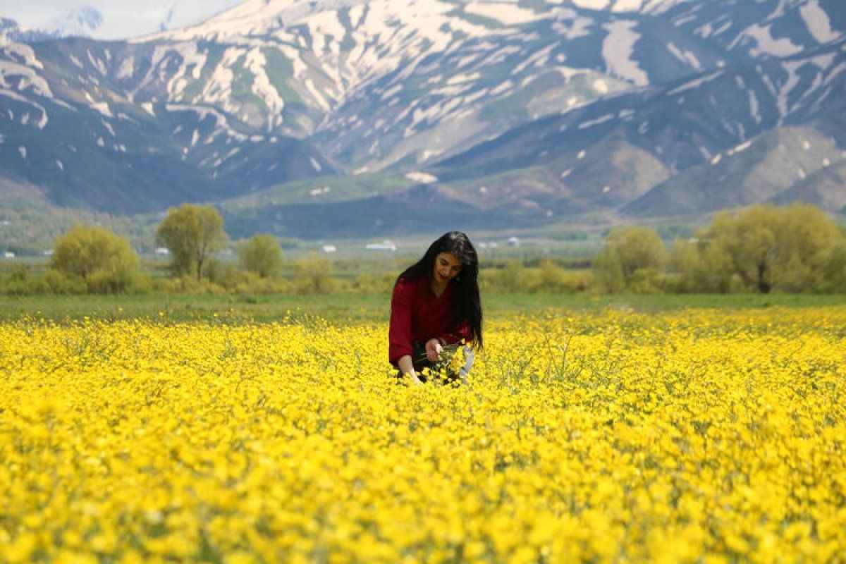 Hakkari'de bahar ayının gelmesiyle birlikte açan sarı çiçekler, ovayı adeta canlandırdı.