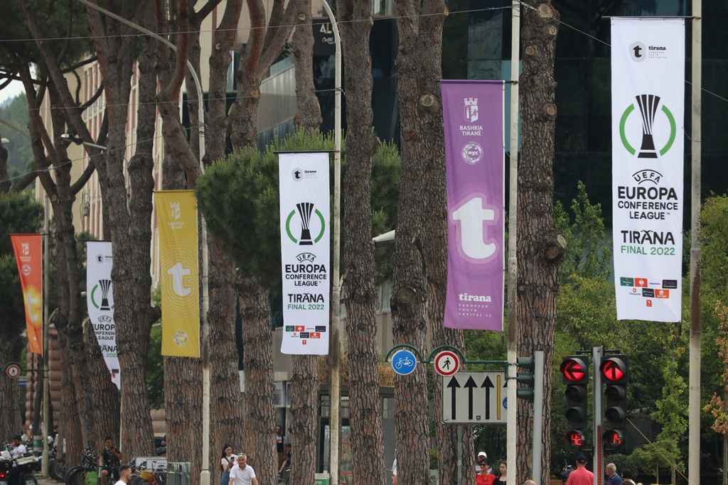 Arnavutluk’un başkenti Tiran’da 25 Mayıs Çarşamba günü oynanacak UEFA Avrupa Konferans Ligi final maçı için hazırlıklar sürüyor.