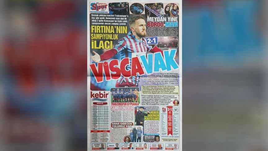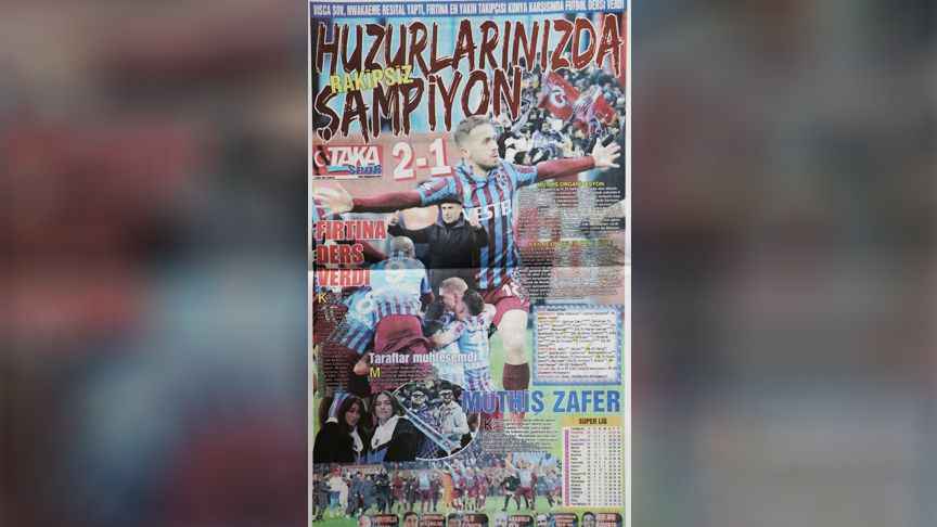 Karadeniz'de Günebakış Gazetesi "Şampiyon Trabzon", Karadeniz Gazetesi "Fırtına rakip bırakmadı" ve "Viscavak" başlıklarını atarken, Kuzey Ekspres Gazetesi "Şampiyonluk armağan olsun", Karadeniz Son Nokta Gazetesi "Gözümüzü kupa bürüdü", Taka Gazetesi de "Huzurlarınızda rakipsiz şampiyon" başlığıyla maç haberlerini okuyucularına aktardı.
