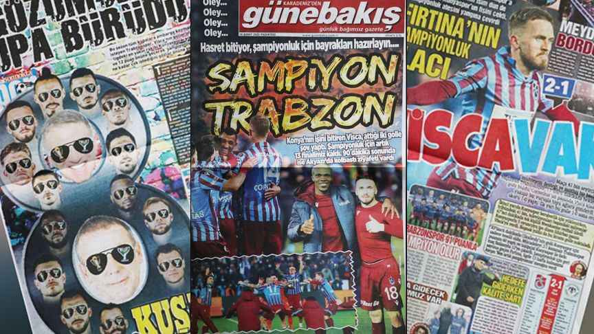 Karadeniz'den Günebakış, Karadeniz, Taka, Karadeniz'de Sonnokta ve Kuzey Ekspres gazeteleri, bordo-mavili takımın şampiyonluk yarışında zirvede tek başına kaldığını yazdı.