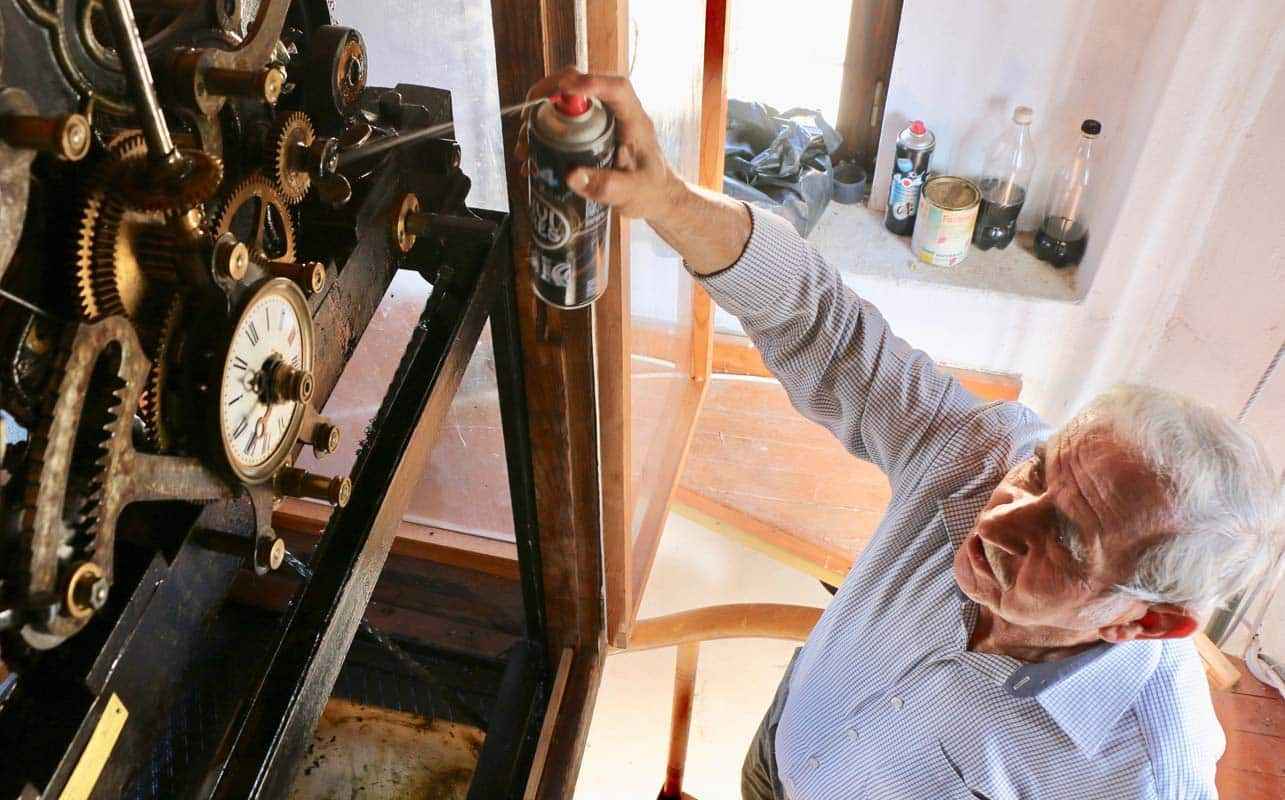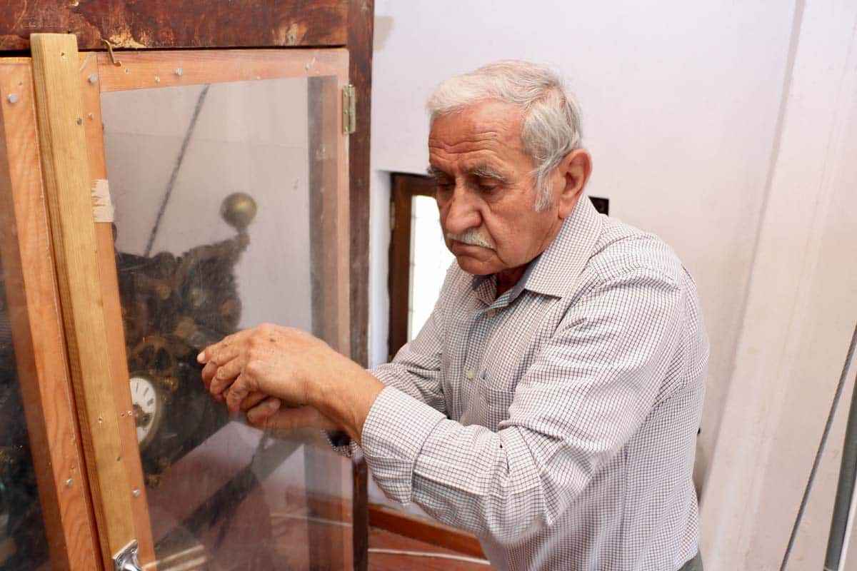 "Ustam, saatin özelliklerini ve kurulma işlemini gösterdikten sonra bütün işleri bana kaldı. Saat bazı arızalar yaptı ancak tamiratından da anladığım için hemen onarıyorum. Bu saatin tamiri için bugüne kadar dışarıdan hiçbir usta gelmedi. Bakımını da yaptığımdan en ufak arızasını gideriyorum. Bazen çanın halatları kopuyor. Bazı yerlerde dişli uyumsuzluğu oluyor. Yataklarından attığı oluyor. Bu gibi arızalarda gayet güzel bir şekilde tamir yapıyorum."
