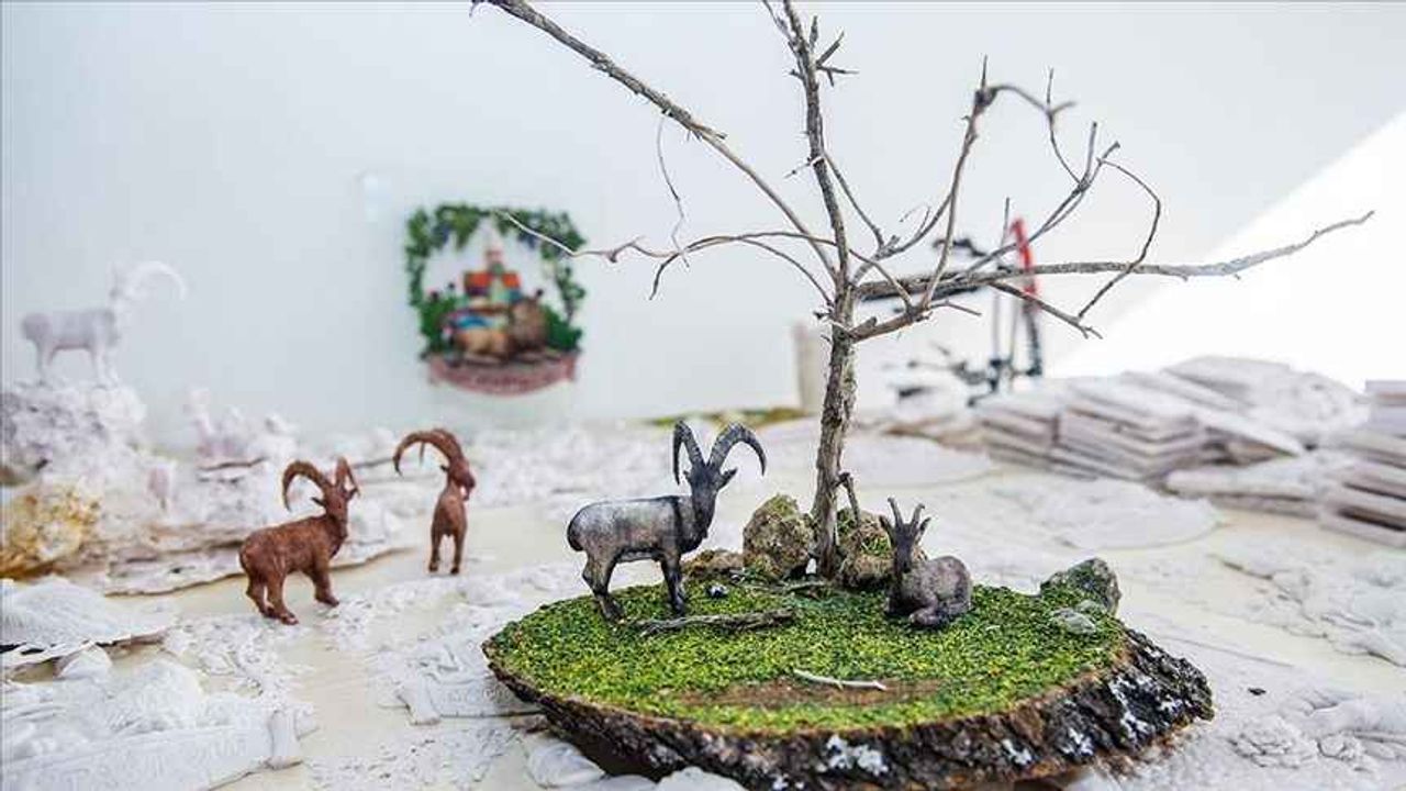 "Yaban keçilerinin güzelliği, masumiyeti ve bizim kültürümüzde ayrıca kutsallığı var ve bu canlılarla doğal ortamlarında sürekli karşılaşıyoruz. Yaban keçisi minyatürlerini yapmadan önce bir çizim taslağı oluşturuyorum. Bu taslağı daha sonra macun ve çamur yardımıyla minyatür haline getiriyorum. Yaptığım taslak minyatürü ardından silikon kalıplar yardımıyla çoğaltıyorum. Keçi minyatürleri kuruduktan sonra gerçeğine benzeyecek şekilde boyama çalışmasını yapıyorum. Minyatürleri, taştan ve ağaçtan yaptığım doğa mekanlarına yerleştiriyorum."