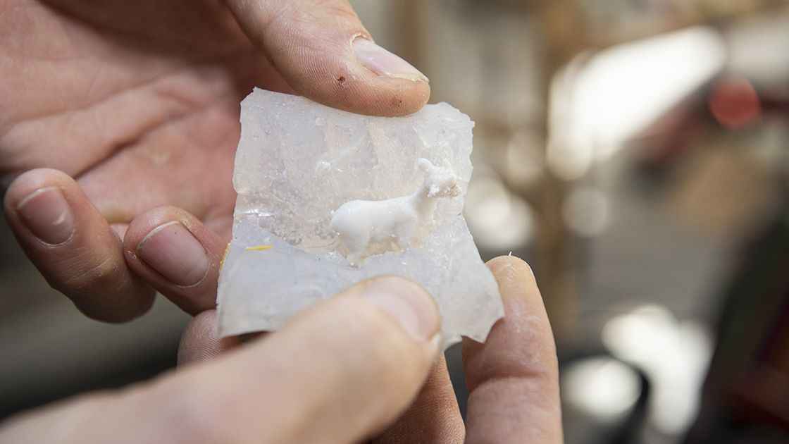 Yöre sakinlerince kutsal sayılan ve avlanması yasak olan keçileri minyatürle canlandırarak bu hayvanlar başta olmak üzere doğa sevgisi ve yaban hayatına dikkati çekmek isteyen Sağol, eserlerinin yapım aşamasında ilk olarak macun, mermer tozu, polyester ve çamurdan harç hazırlıyor.