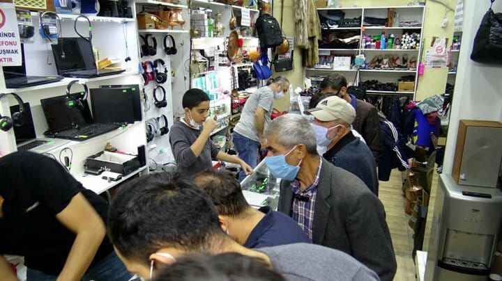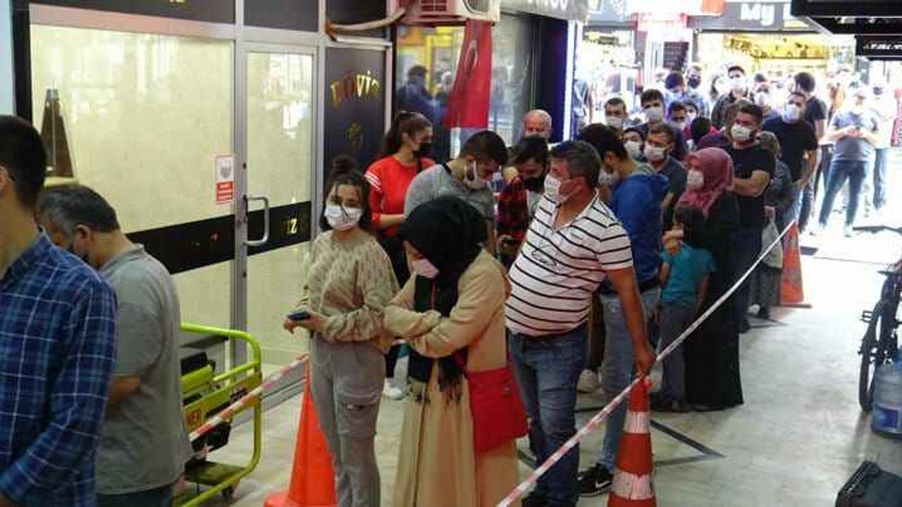 Yapılan duyuruların ardından Korkmaz’a ait Marmara Caddesi’ndeki bir iş hanındaki mağazanın önünde uzun kuyruk oluştu. Kuyrukta yaklaşık 1 saat bekledikten sonra içeriye 5’er kişilik gruplar halinde alınan müşteriler özellikle cep telefonu, tablet ve bilgisayarlarla ilgilendi.