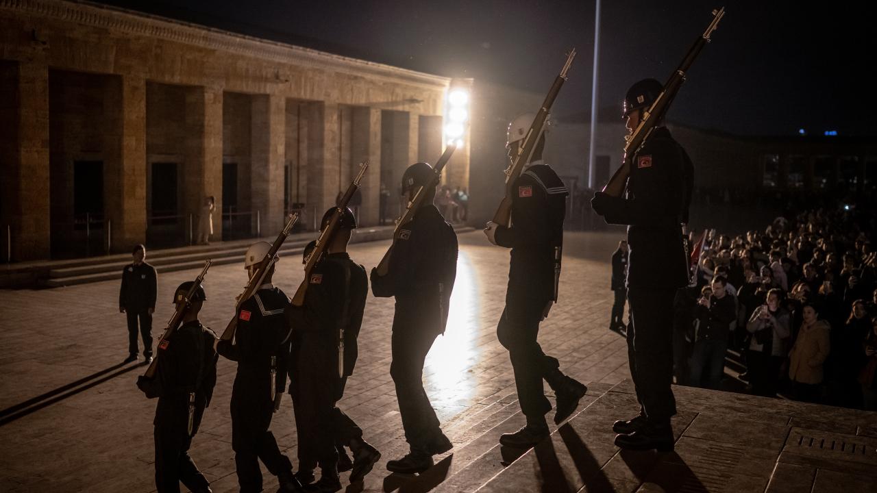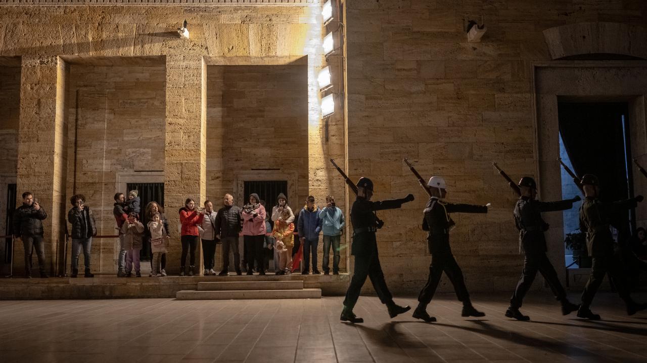 Vatandaşlar, askerlerin nöbet değişim törenlerini izledi.