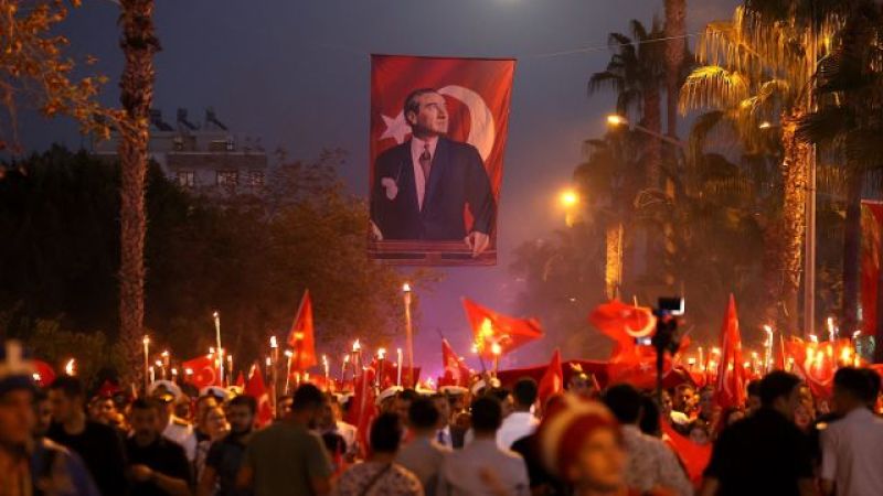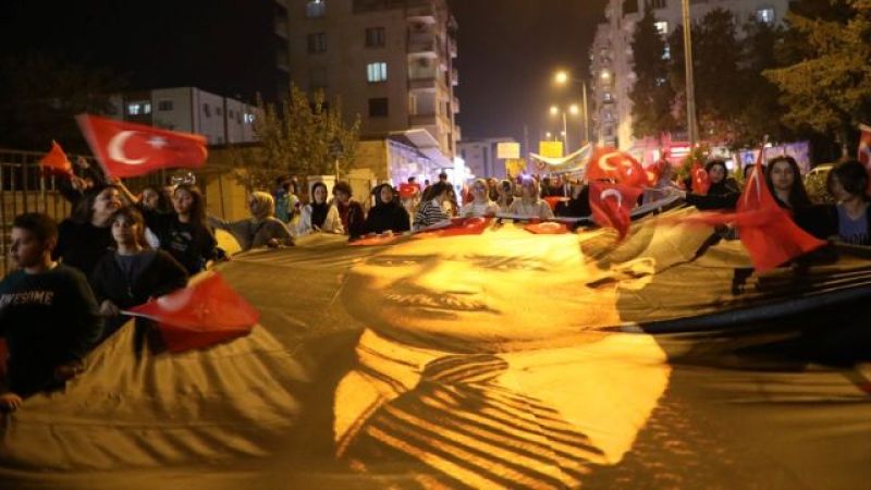 Hatay'ın Dörtyol ilçesinde kutlamalar kapsamında fener alayı yürüyüşü düzenlendi. Meşaleler ve ellerinde bayraklarla bir araya gelen vatandaşlar Çaylı Caddesi'nden Atatürk Anıtı'na kadar yürüdü.