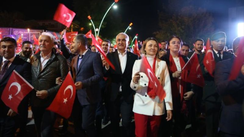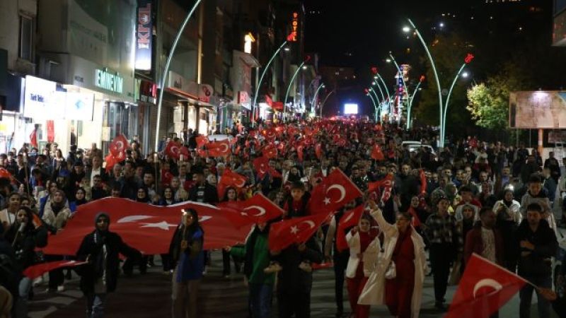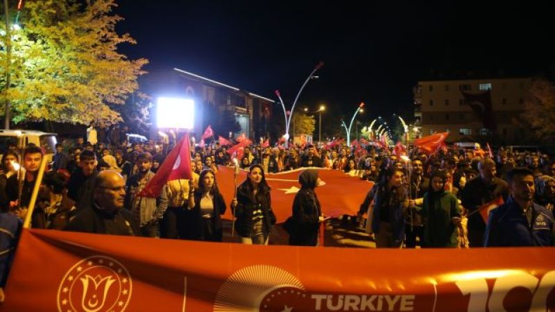 Cumhuriyet'in 100. yılı kutlamaları kapsamında Muş'ta yüzlerce kişinin katılımıyla "Fener Alayı Yürüyüşü" yapıldı.