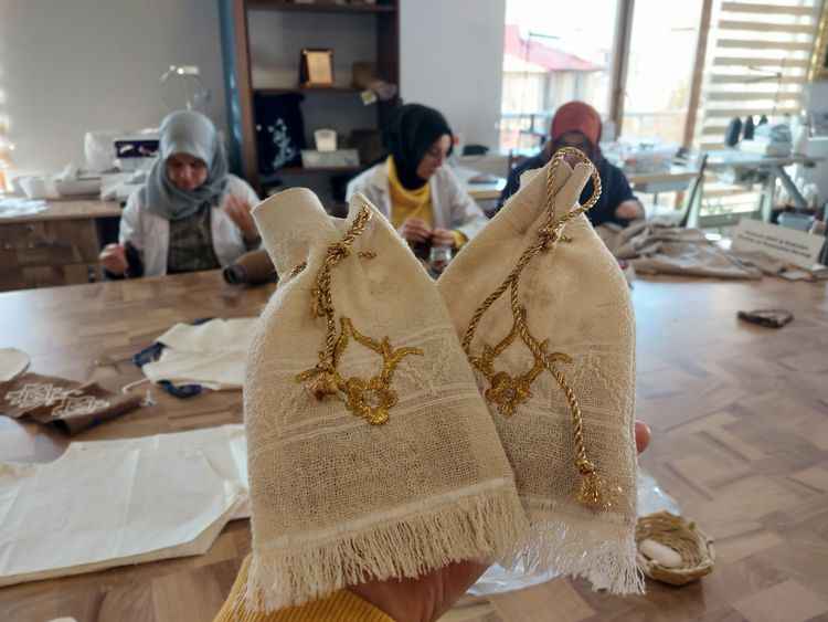 Erzurum Aktif İş Kadınları Derneği Başkanı Hülya Saltuklu da atölyede ihramdan kadın, erkek giyiminin yanı sıra hediyelik ev eşyası gibi ürünler yaptıklarını söyledi.