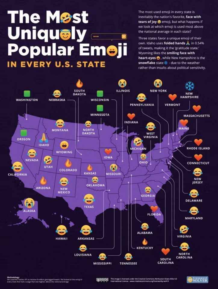 Crossword-Solver tarafından yapılan araştırmaya göre, "gülmekten gözünden yaş gelmek" emojisi olarak da bilinen sevinç gözyaşları emojisinin, Türkiye dahil dünya genelinde 75 ülkede en çok kullanılan emoji olduğunu ortaya koydu.