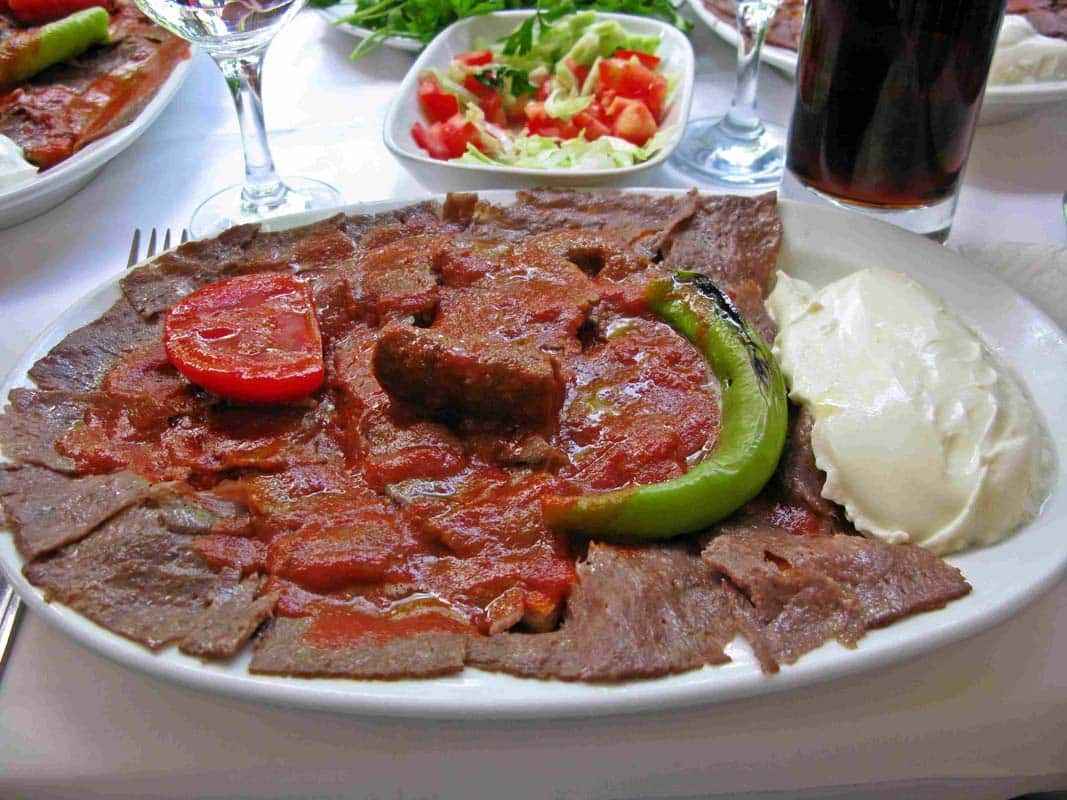 Adını mucidi İskender Efendi’den alan İskender kebap Bursa’nın en ünlü üç şeyinden biri (diğerleri ise ipek ve Uludağ’ın kayak pistleri). İskender Efendi’nin ilk kez 1867’de Kayhan Çarşısı’ndaki çalışanlar için pişirdiği bu yemek için ince döner dilimleri tombik pidelerin üzerine yerleştiriliyor. Döner ve pideye, taze domates sosu, erimiş tereyağı, yoğur, domates ve biber eşlik ediyor.