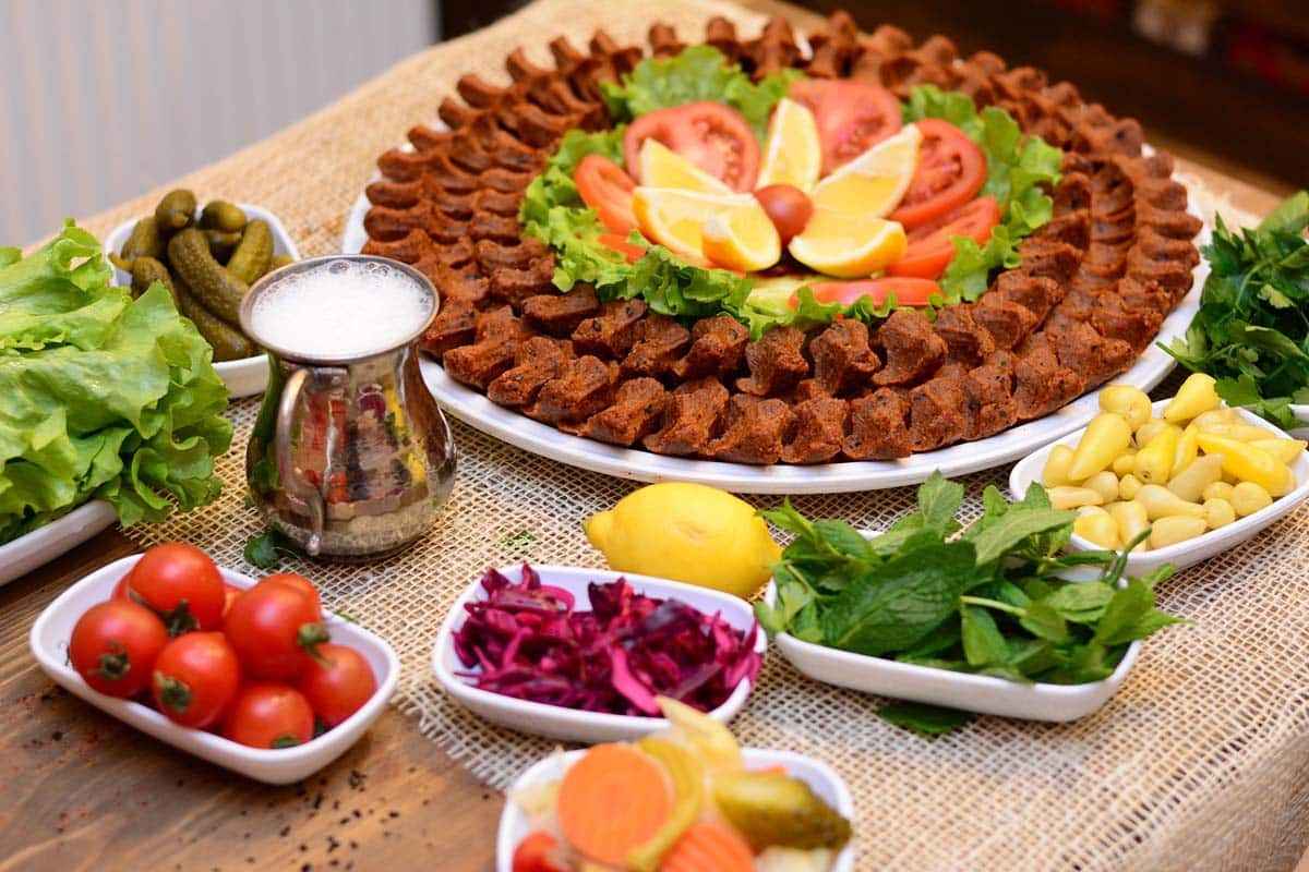Şanlıurfa kökenli bir yemek olan çiğ köfte için, çiğ kıyma, bulgur, domates salçası, soğan, sarımsak, biber ve baharatlar bir araya getirilip hazır olana kadar yoğuruluyor. Hazır olup olmadığını anlamanın yolu ise tavana bir parça köfte atmak. Eğer yapışırsa köfte yemeye hazır anlamına geliyor. Günümüzde sadece bulgur ve bazen de dövülmüş cevizle yapılan çiğ köfte de daha sağlıklı ancak aynı derecede lezzetli bir alternatif.