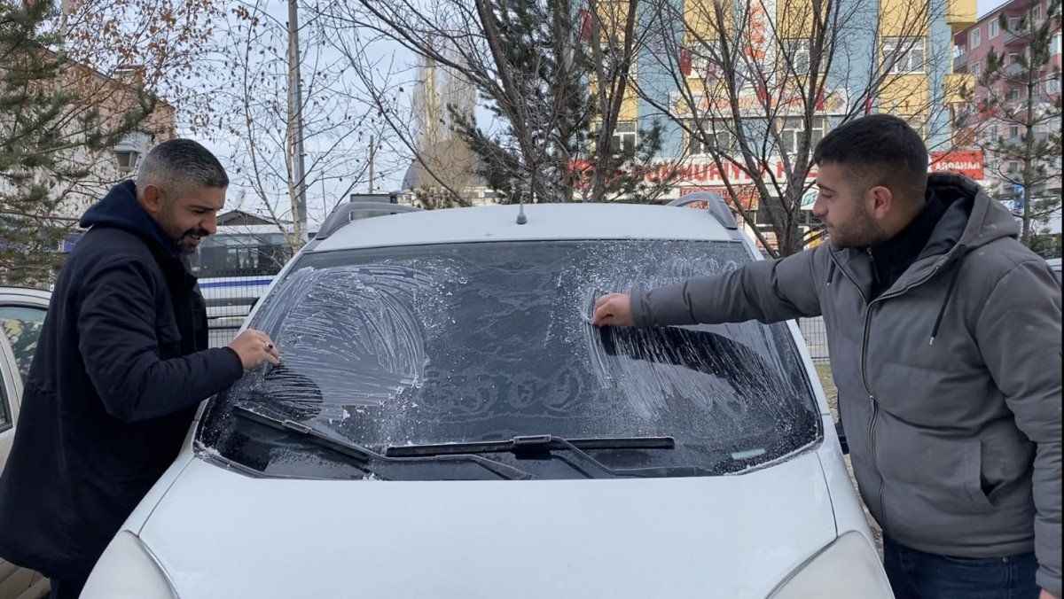 Sürücüler, buz tutan araç camlarını temizleyip yola çıktı.