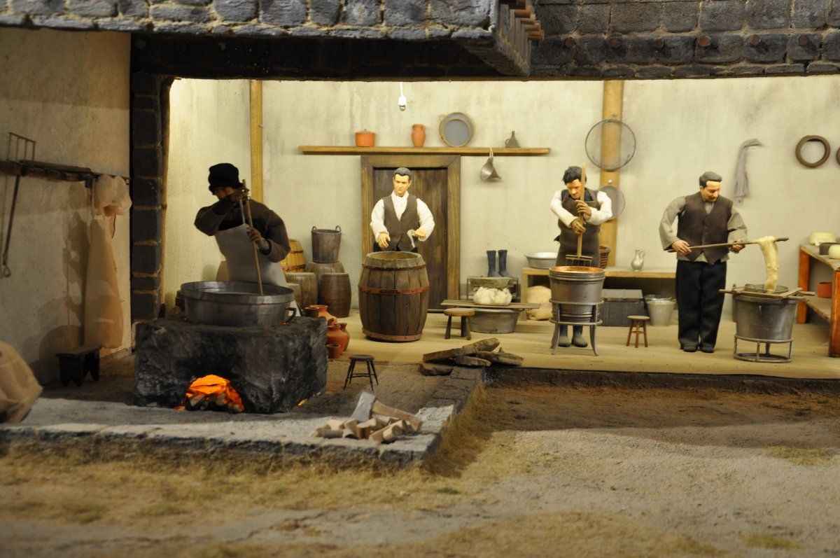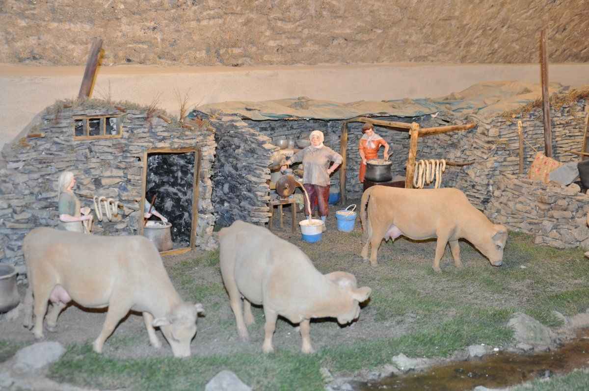Müzede ahır bölümü, içi süt dolu güğümler, yaylalardaki yaşam ve peynir yapımı, peynirin imalat serüveni anlatılırken; geçmişten günümüze peynir yapımında kullanılan araç ve gereçler de sergileniyor.