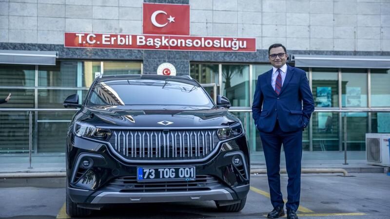 Türkiye'nin Erbil Başkonsolosu Mevlüt Yakut, Türkiye'nin yerli ve milli otomobili Togg ile Erbil sokaklarında test sürüşü yaptı.