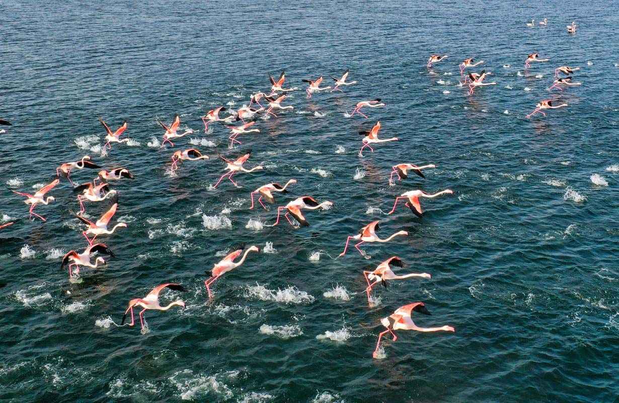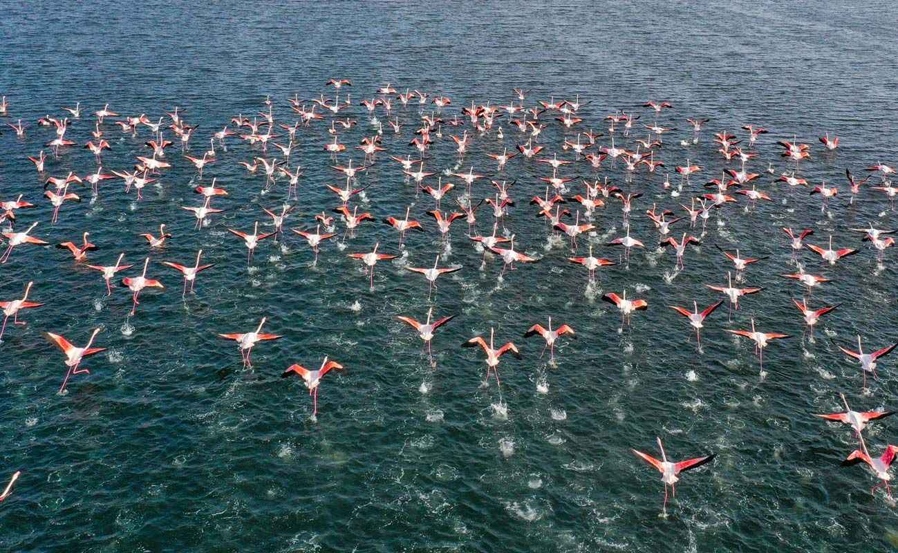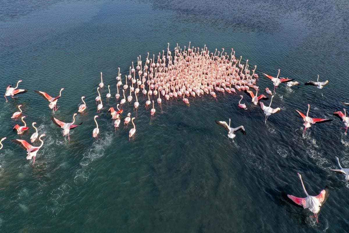 Türkülerin "allı turnası" flamingolardan görsel şölen