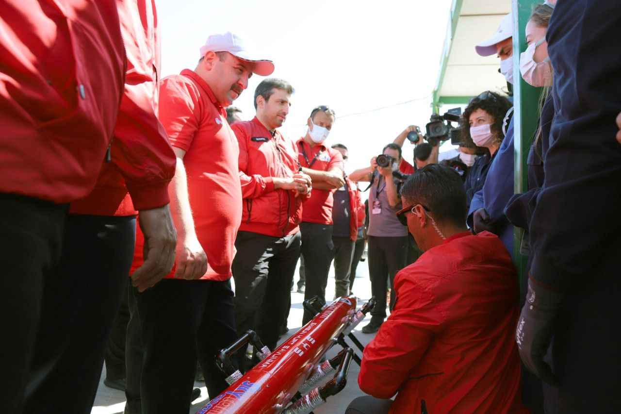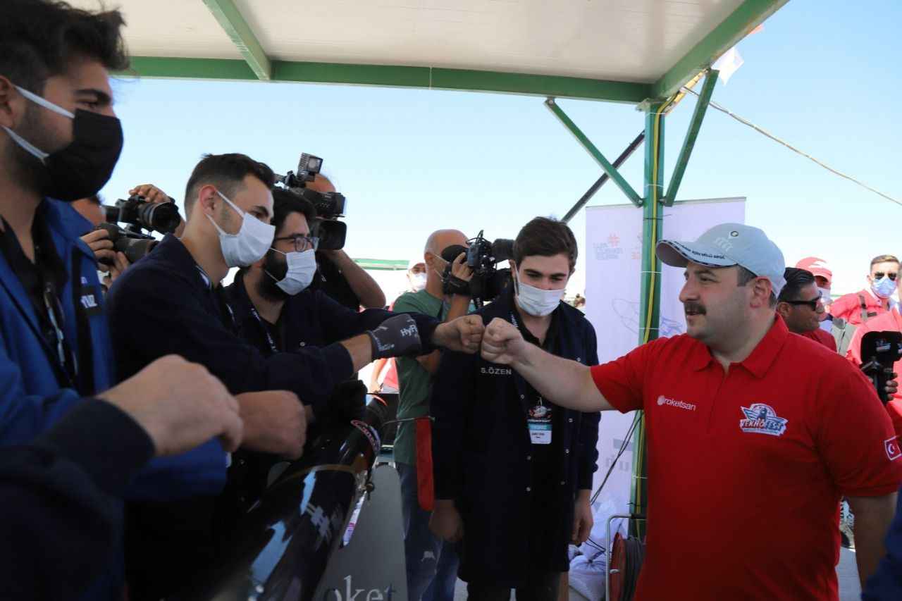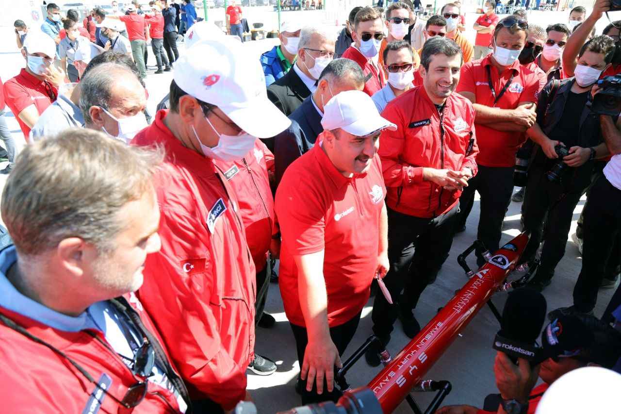 Sanayi ve Teknoloji Bakanı Mustafa Varank ve TEKNOFEST Yönetim Kurulu Başkanı Selçuk Bayraktar, Aksaray'daki Tuz Gölü'nde düzenlenen TEKNOFEST 2021 Roket Yarışları'na katılarak atışı yapılan roketleri izledi.