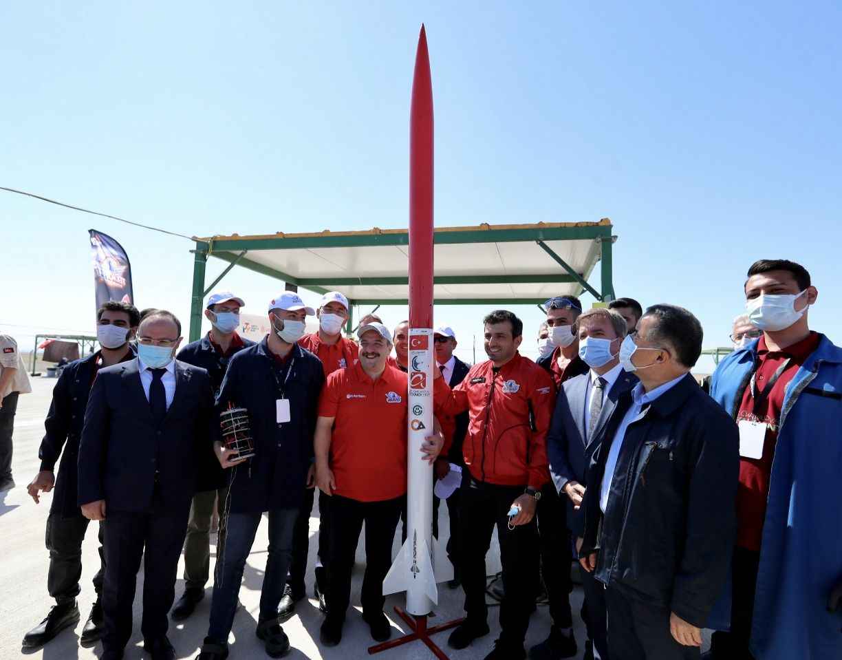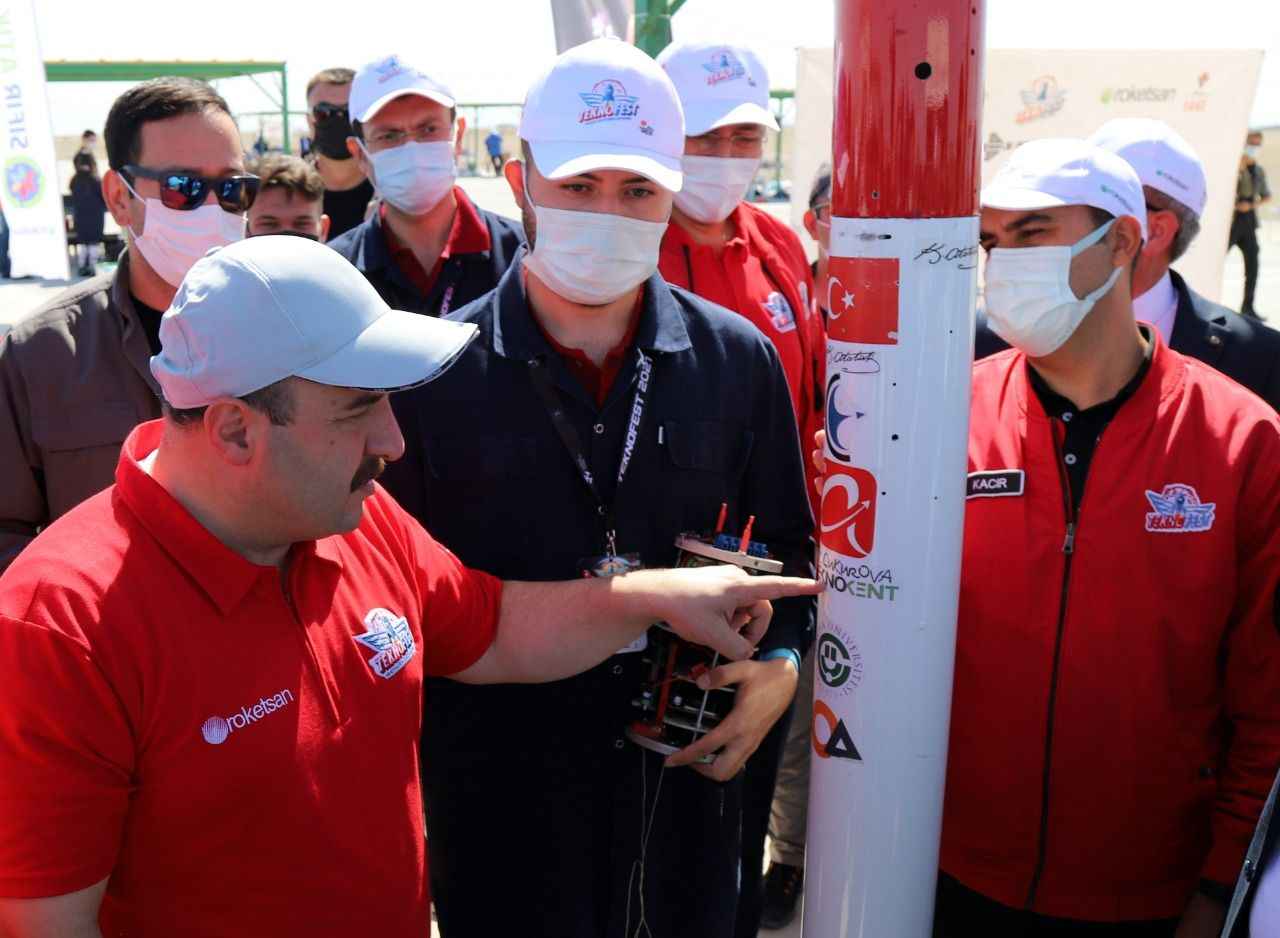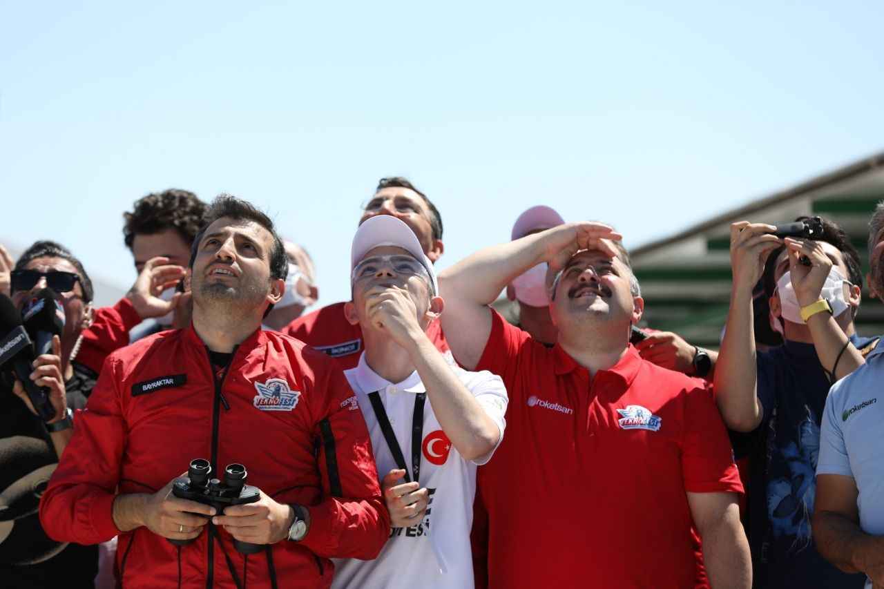Sanayi ve Teknoloji Bakanı Mustafa Varank ve TEKNOFEST Yönetim Kurulu Başkanı Selçuk Bayraktar, Aksaray'daki Tuz Gölü'nde düzenlenen TEKNOFEST 2021 Roket Yarışları'na katılarak atışı yapılan roketleri izledi.