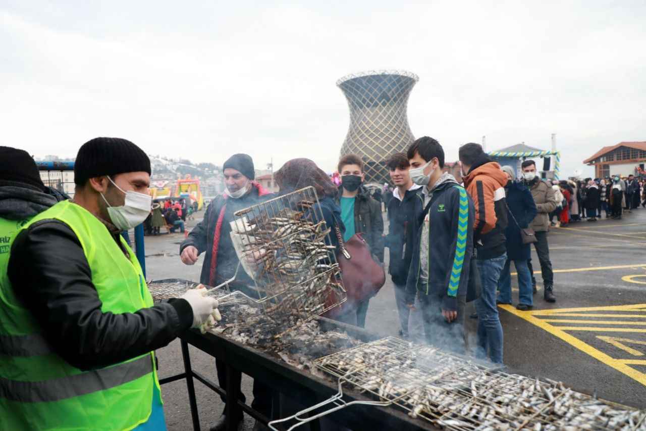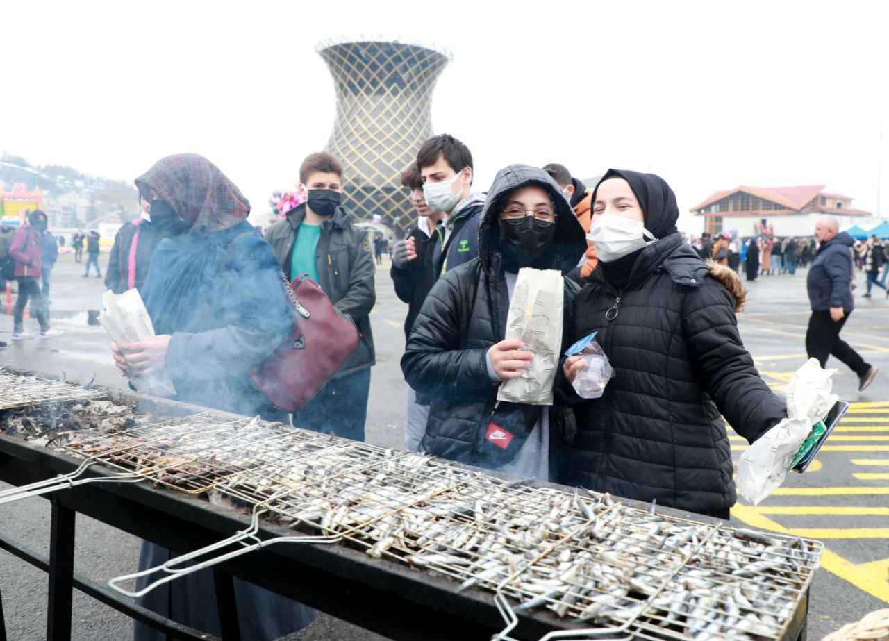 Yaklaşık 3 bin kişi, 2,5 ton hamsiyi 2 saatte tüketti. Soğuk havaya rağmen festivale gelenlere, helva ve çay dağıtıldı.