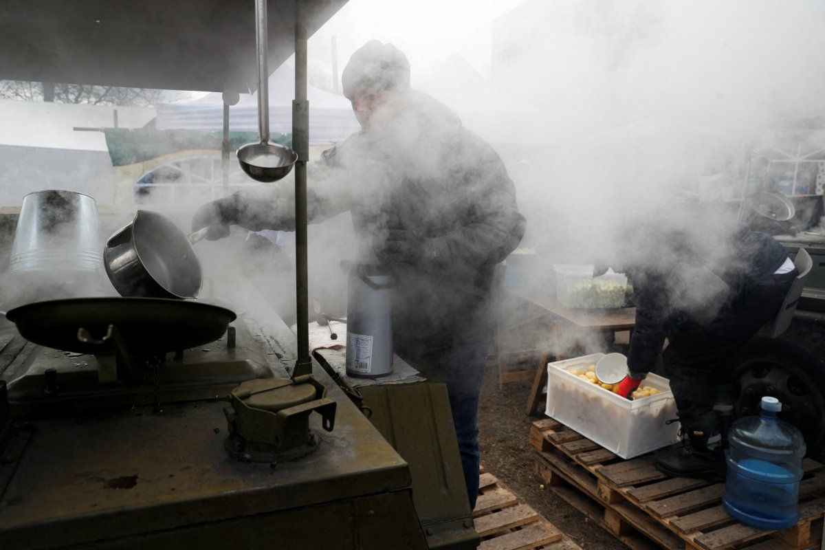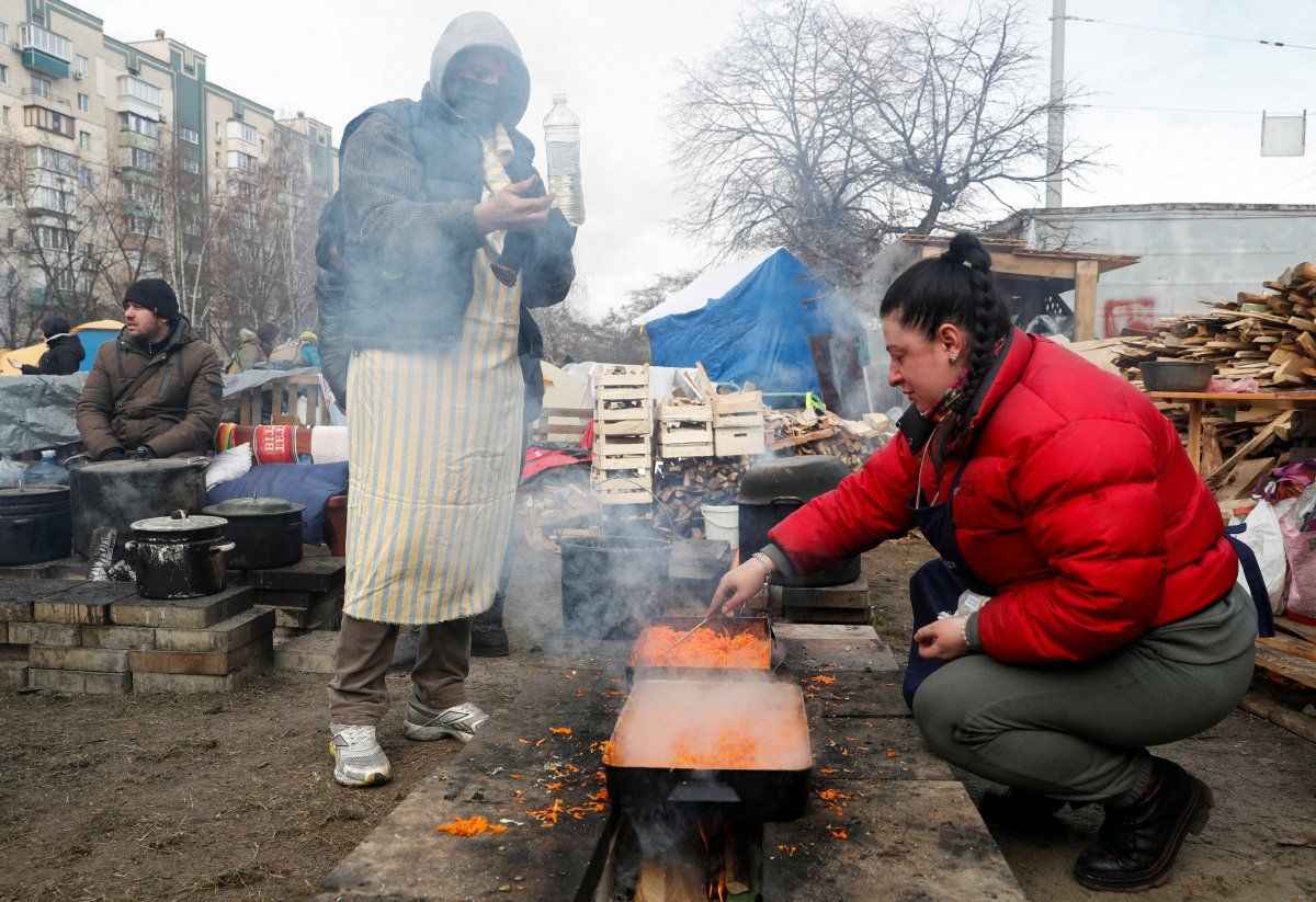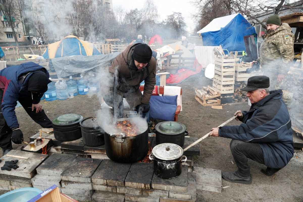 Diğer taraftan direnişin sembol yerlerinden başkent Kiev'de gönüllüler, sahra mutfağı kurdu.