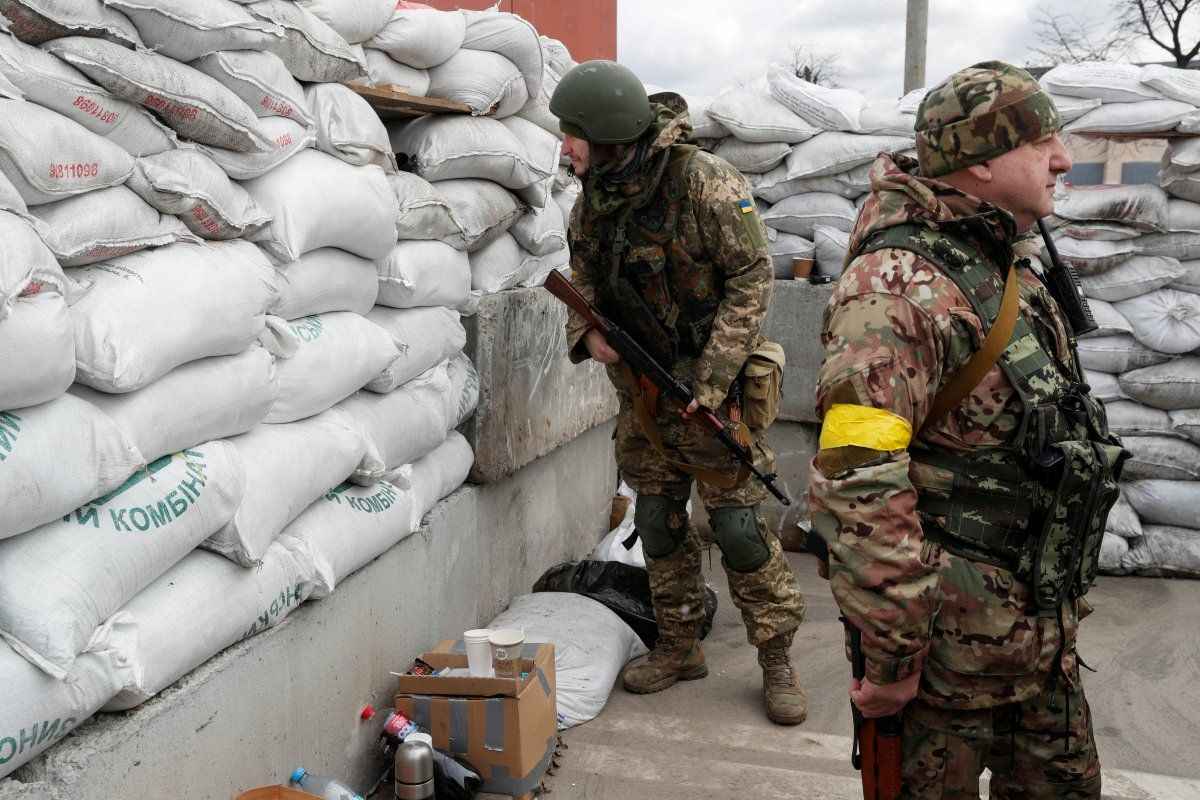 Kiev'de tam bir seferberlik ilan edilmiş durumda. Bu kapsamda askerler, silahlarıyla birlikte barikatların ve kritik noktaların etrafındaki bekleyişini sürdürüyor.
