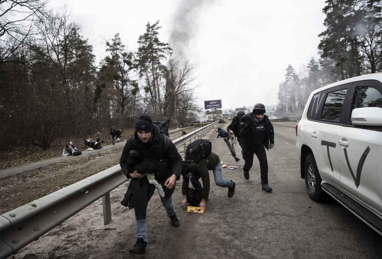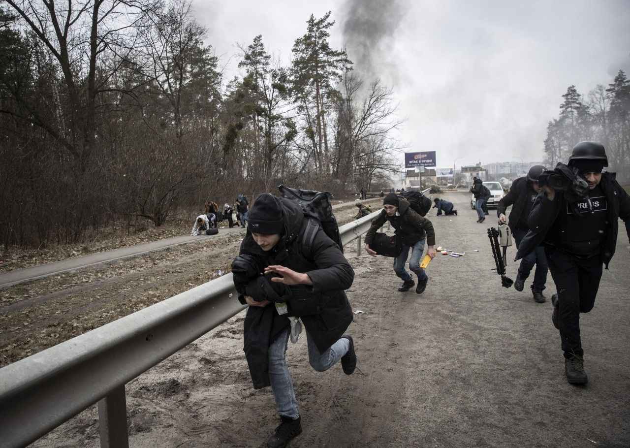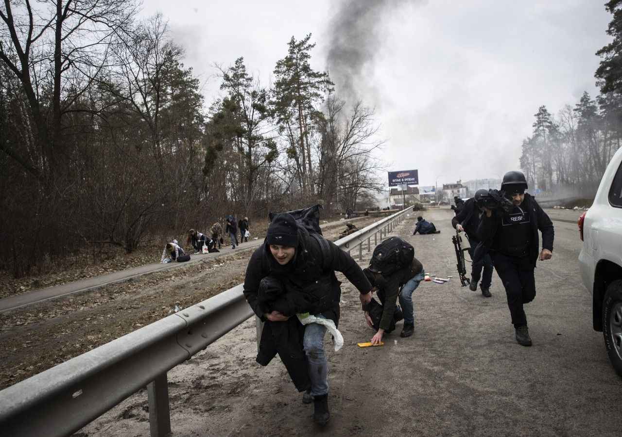 Rusya’nın Ukrayna’ya saldırısı tahliyeler esnasında da devam ediyor. Irpin şehrinde köprü etrafında tahliye için toplanan sivillerin birkaç metre uzağında patlama meydan geldi. Saldırı anı tahliyeleri takip eden AA ekibi tarafından görüntülendi. İşte kameralara yansıyan o anlar... \n