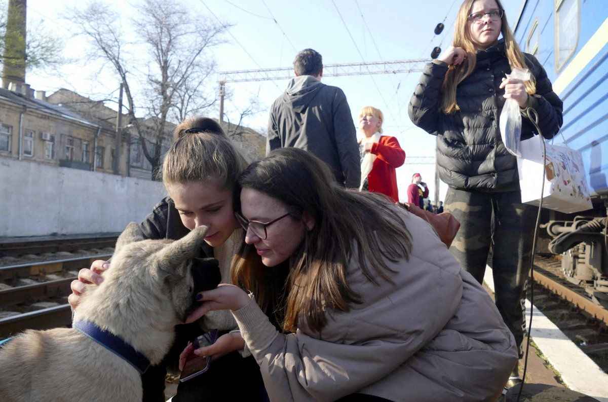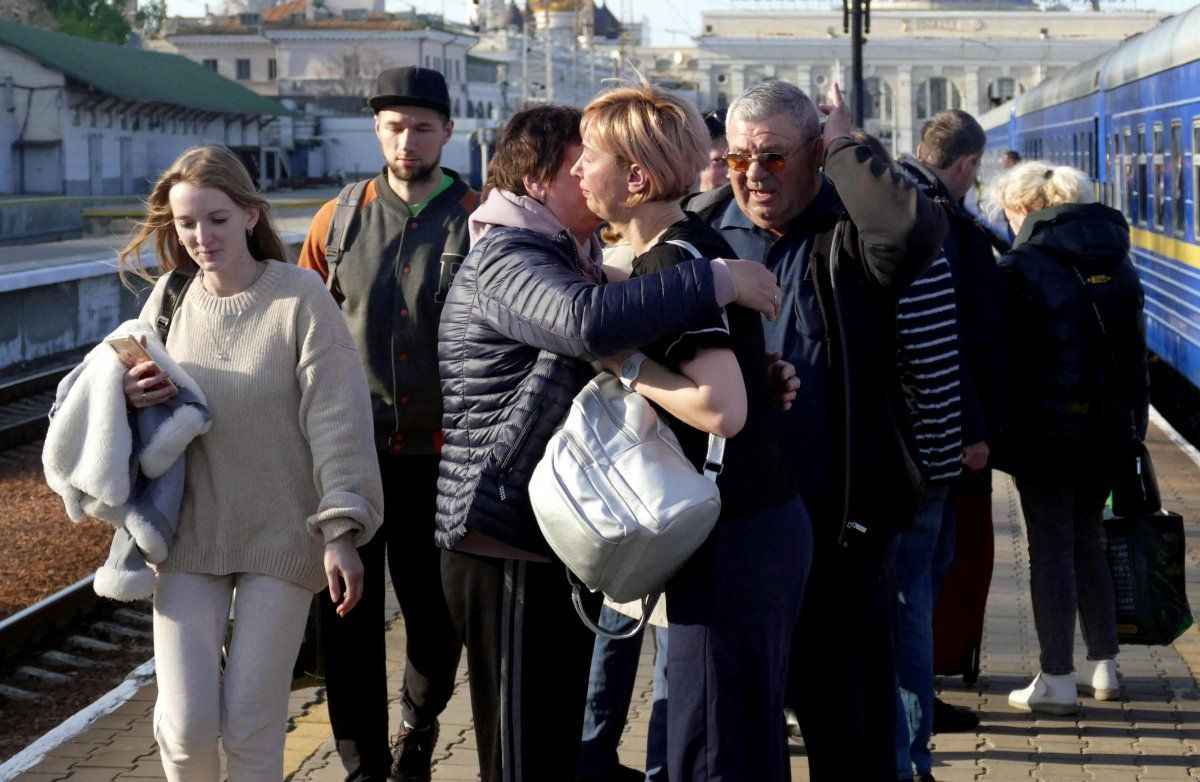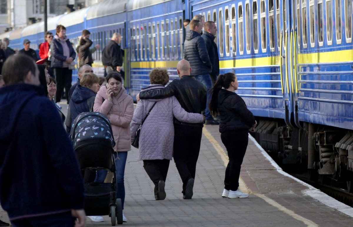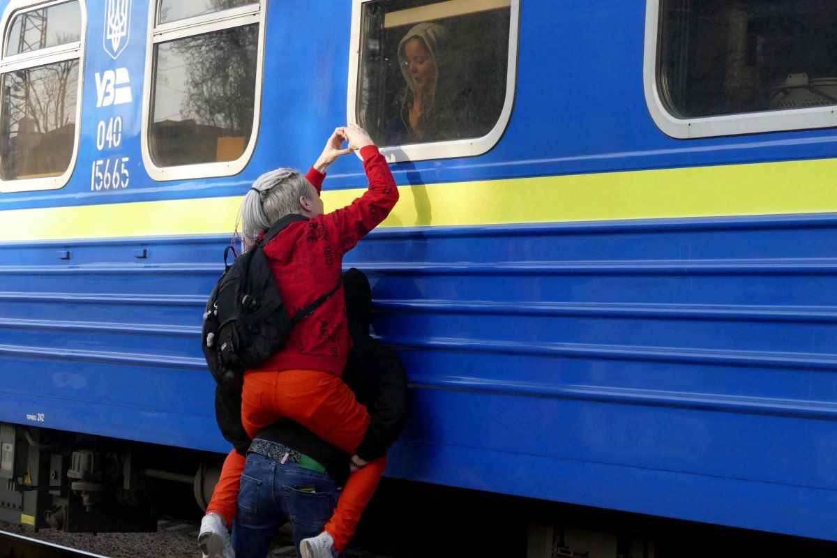 Tren istasyonunda sevdikleriyle ve akrabalarıyla vedalaşan Ukraynalılar, yaşadıkları kenti terk etmek zorunda kaldı.
