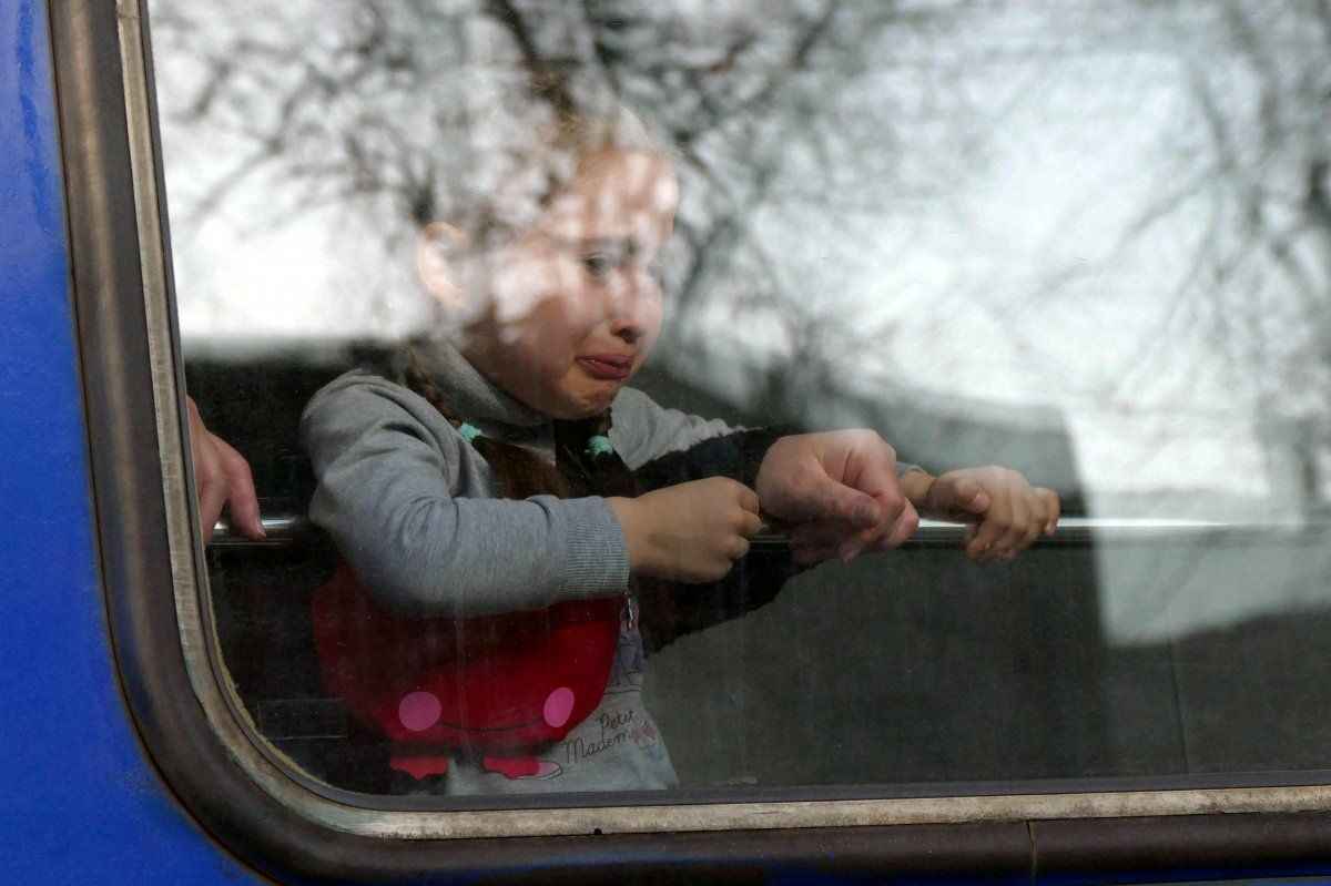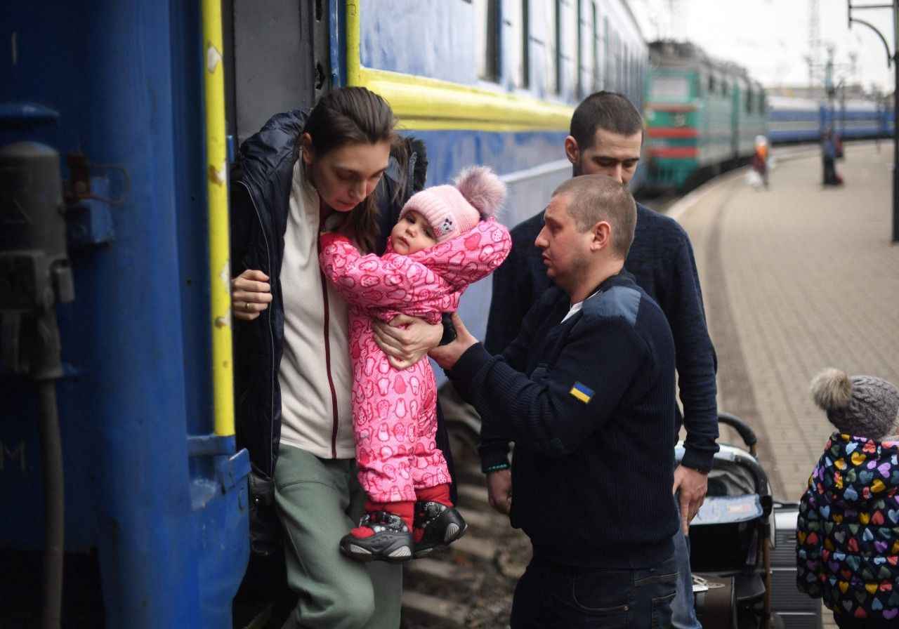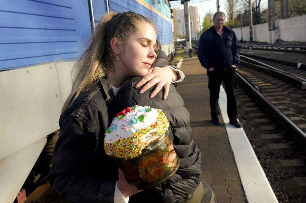 Tren istasyonunda sevdikleriyle ve akrabalarıyla vedalaşan Ukraynalılar, yaşadıkları kenti terk etmek zorunda kaldı.