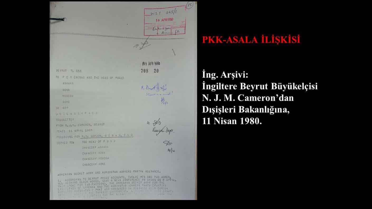 Ermenistan-PKK ilişkisine değinen Özşavlı, İngiliz arşiv belgesine göre, 1980'de ASALA ve PKK iş birliğine karar verildiğinin deklare edildiğini kaydetti. Özşavlı, PKK-ASALA iş birliğinin bu süreçte başladığını belirterek, ASALA'dan faydalanan Ermenistan'ın aynı zamanda terör örgütü PKK'dan da faydalandığını kaydetti.