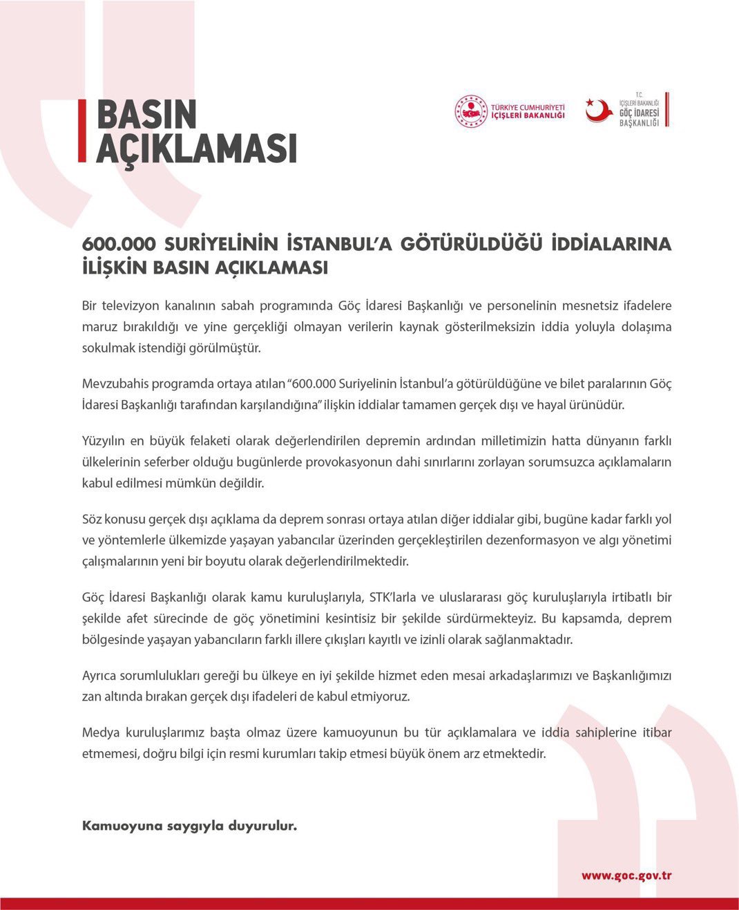 Göç İdaresi Başkanlığı yalanladı.✅