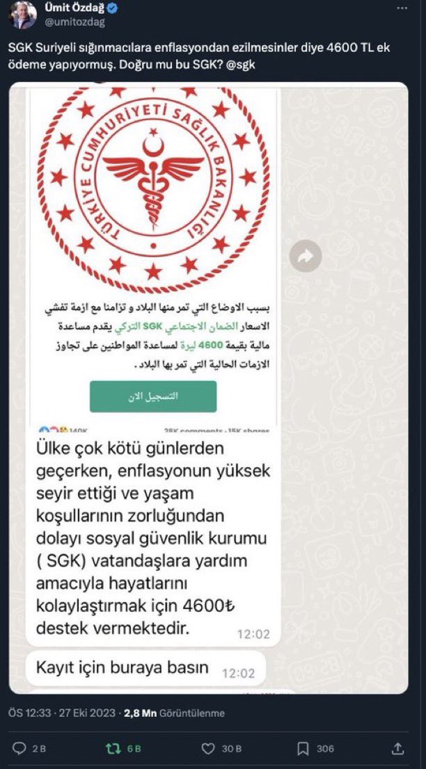 17) “SGK Suriyeli sığınmacılara enflasyondan ezilmesinler diye 4600 TL ek ödeme yapıyor"❌