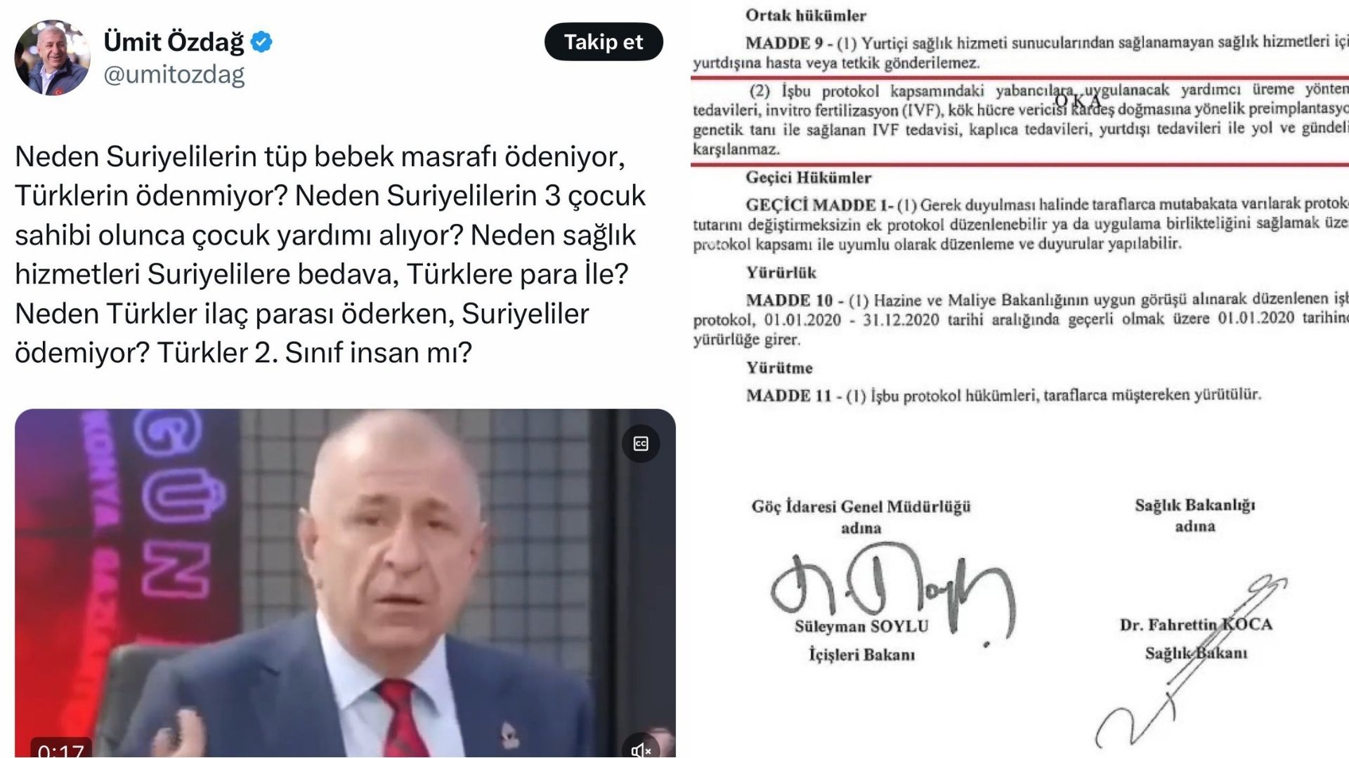 18) Ümit Özdağ’ın TELE 1 canlı yayınında “Türkiye’de 7 milyonu Suriyeli, 13 milyon yabancı var ve en az 2,5 milyon Suriyeliye Türk vatandaşlığı verildi” iddiası ❌