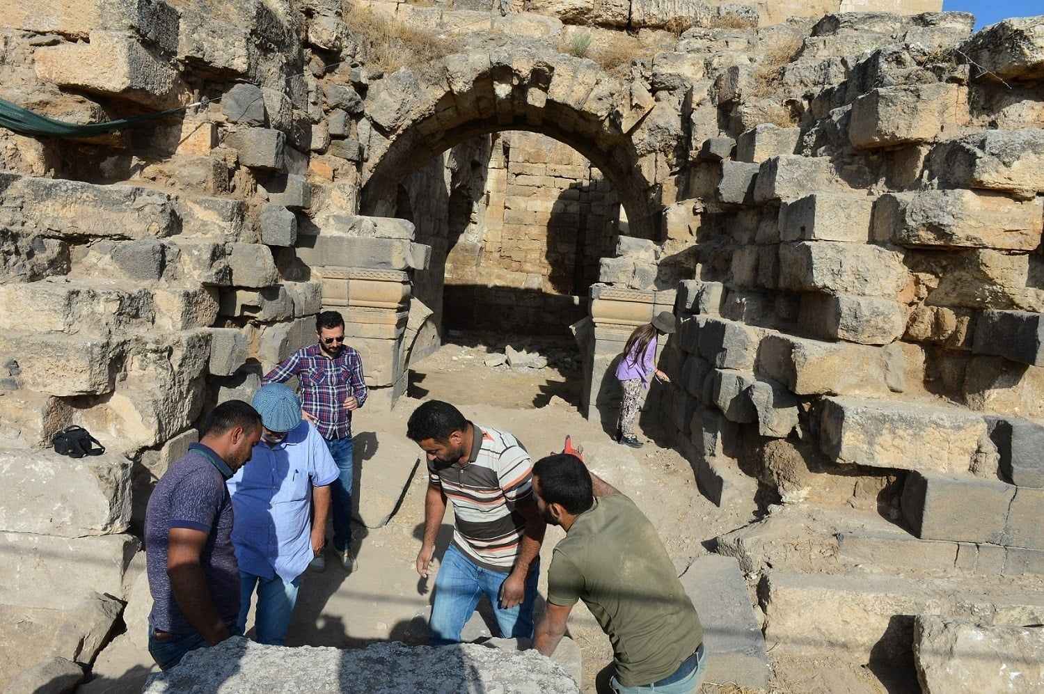Sarayın eksik parçaları gelmeye başladı. Soldaki çoban köpeklerinin üzerindeki sütun başlığının tekini bulduk. Bazalt taştan yapılma ve oyulmuş halde olan sarmal örgülü çift satırlı bir kitabenin başlığını da yeni bulduk. Bunun da 11. yüzyıla Numeyriler dönemine ait olduğunu düşünüyoruz. İncelenecek, belki daha eski tarihli de olabilir.