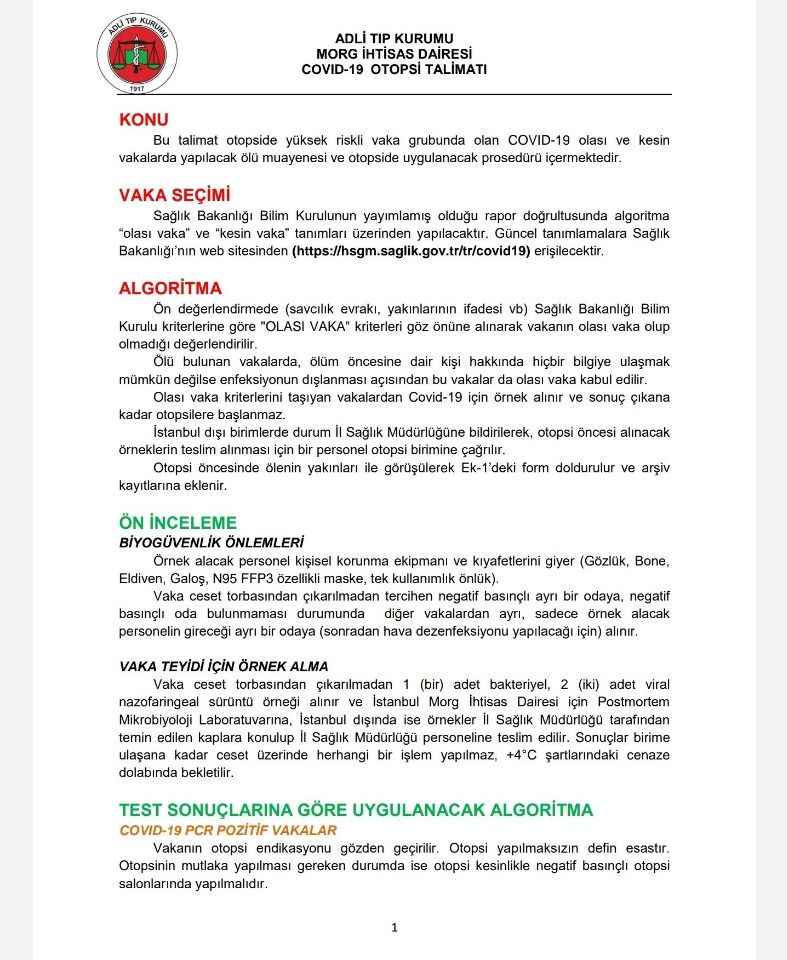 Koronavirüs hastalarına neden otopsi yapılmıyor? Binlerce koronavirüs hastasına otopsi yapılmıştır. Hem Türkiye'de hem de dünyada yapılan bu otopsilerin raporları yayınlanmış, AA ve TRT gibi basın organlarında haberleri yapılmıştır. Adli Tıp otopsi yönergesi de yayılanmıştır.