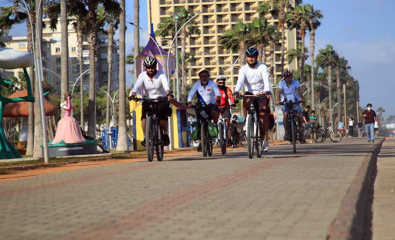 Mersin'de Zirve Bisiklet Topluluğu tarafından karşılanan ekip, kentteki sahil bandında da pedal çevirdi.