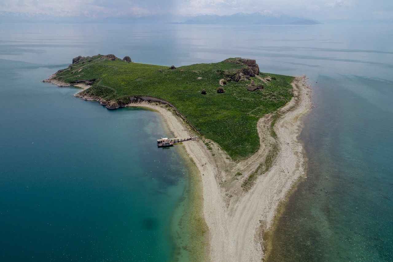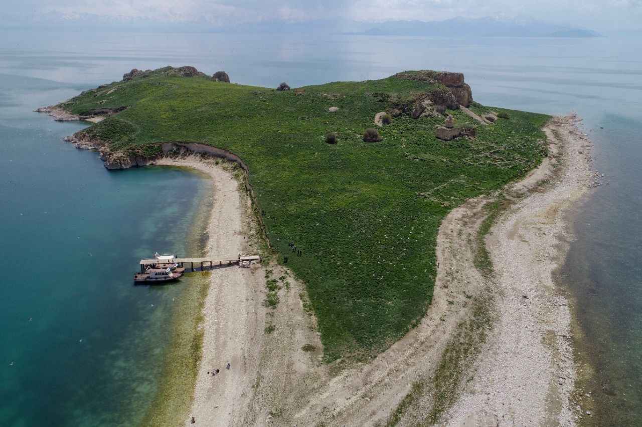 Göldeki 4 büyük adadan biri olan, Ktouts Manastırı ve doğasıyla çok sayıda ziyaretçi ağırlayan Çarpanak Adası'nı karaya bağlayan 1 kilometre uzunluğundaki yolun büyük bölümü de çekilmeyle kara parçasına dönüştü.