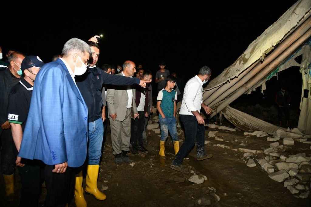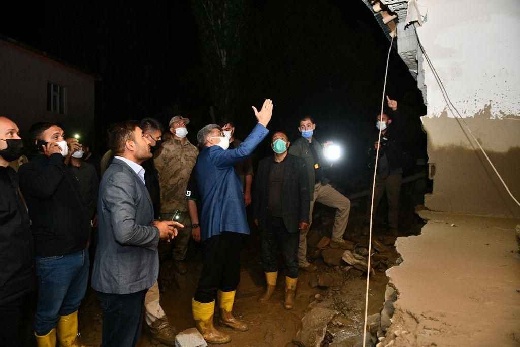 Başkale`de selin yaralarını en kısa sürede saracaklarını vurgulayan Bilmez, "Evi zarar görenler için barınma yeri ayarlandı. Bakanlıklarımız da ne gerekiyorsa yapılacağını söyledi. Biz de bütün ekiplerimizle buradayız. Bir vatandaşımız sele kapılmış. İlk müdahaleyi muhtarımız yapmış. Hastanede şu anda ve sağlık durumu iyi. Yağışlar sürecek, dikkat etmemiz gerekiyor. Özellikle hayvanlarımızı dere yataklarında otlatmayalım." ifadelerini kullandı.