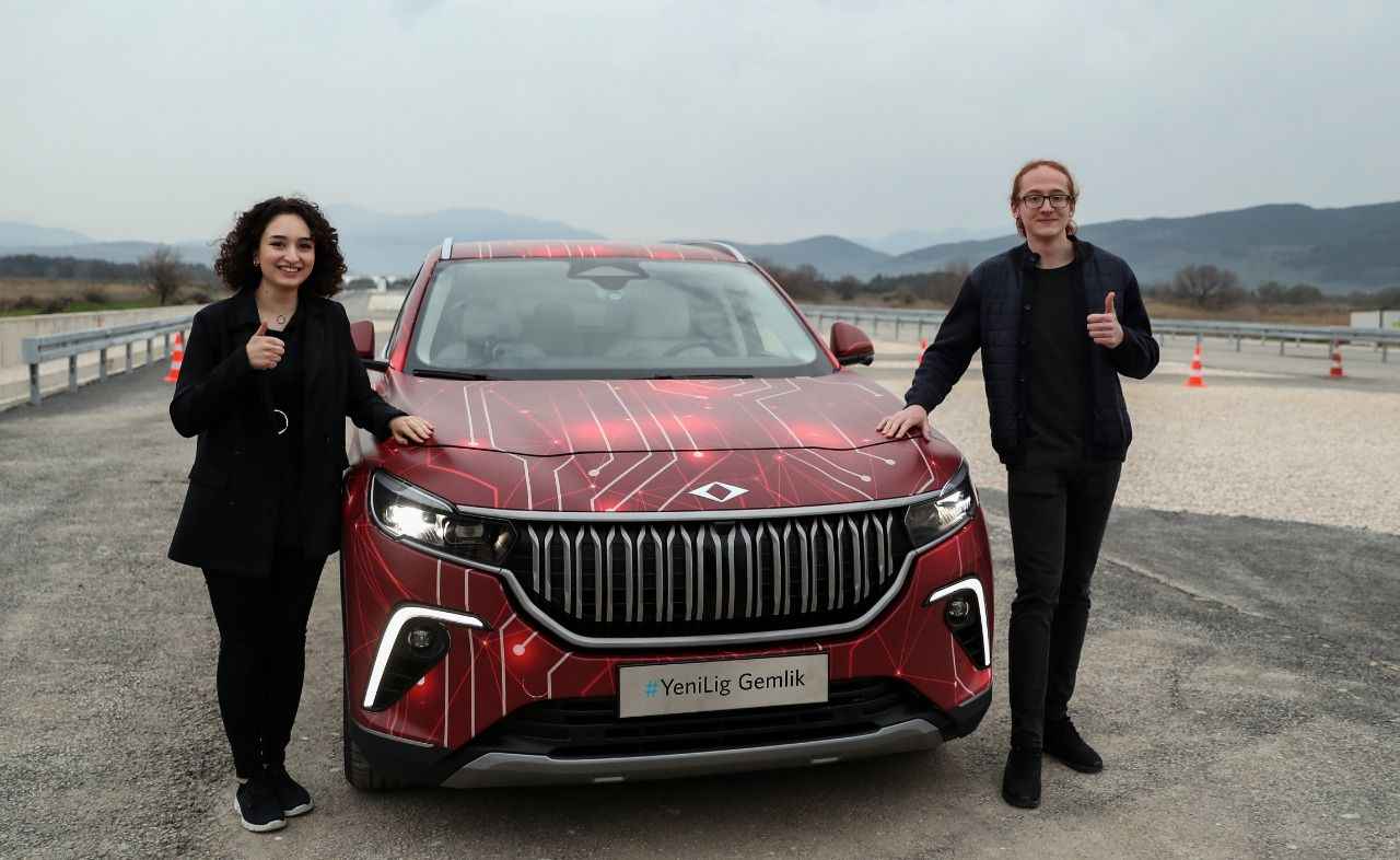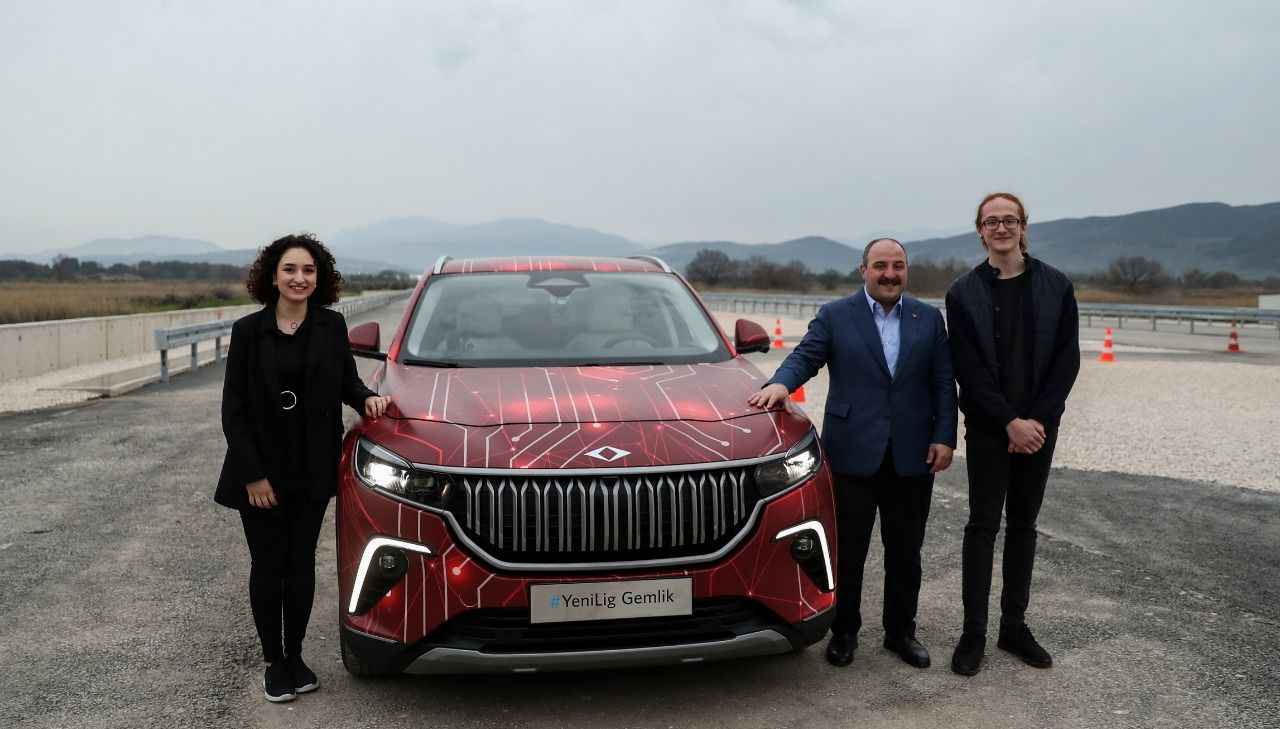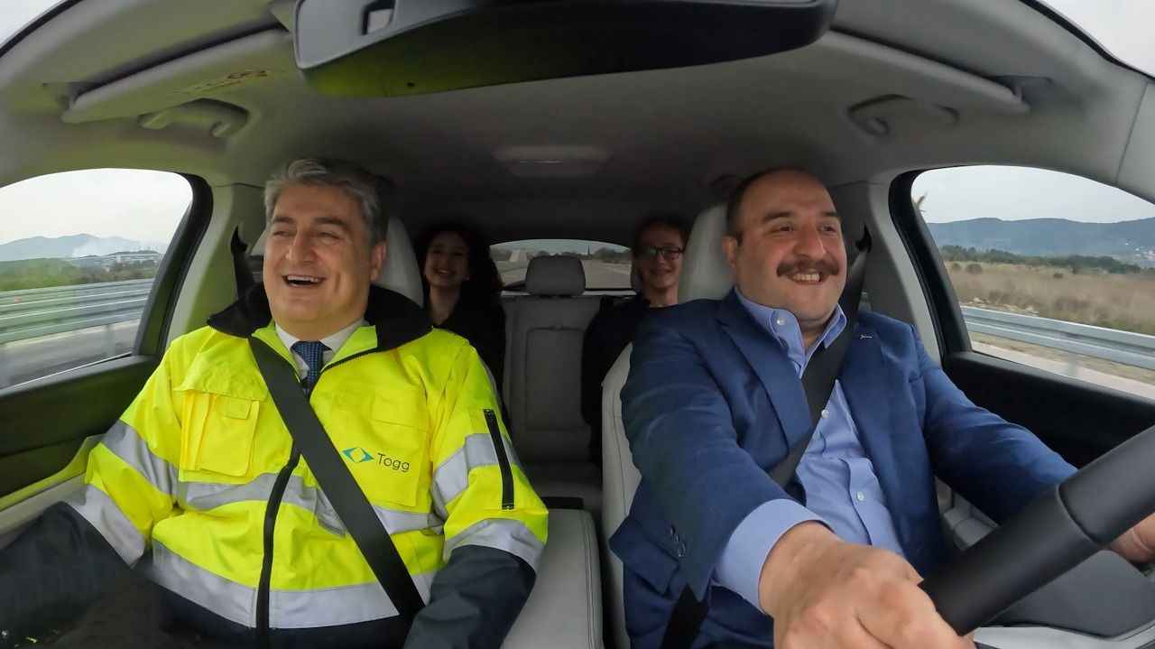 Togg'un arka koltuğunda Bakan Varank'ın sosyal medya üzerinden yaptığı çağrı sonucu davet edilen iki öğrenci yer aldı. Uludağ Üniversitesi Bilgisayar Mühendisliği öğrencileri Sena Bahadıroğlu ve Ferit Yiğit Balaban, Varank'ın test sürüşüne eşlik etti.