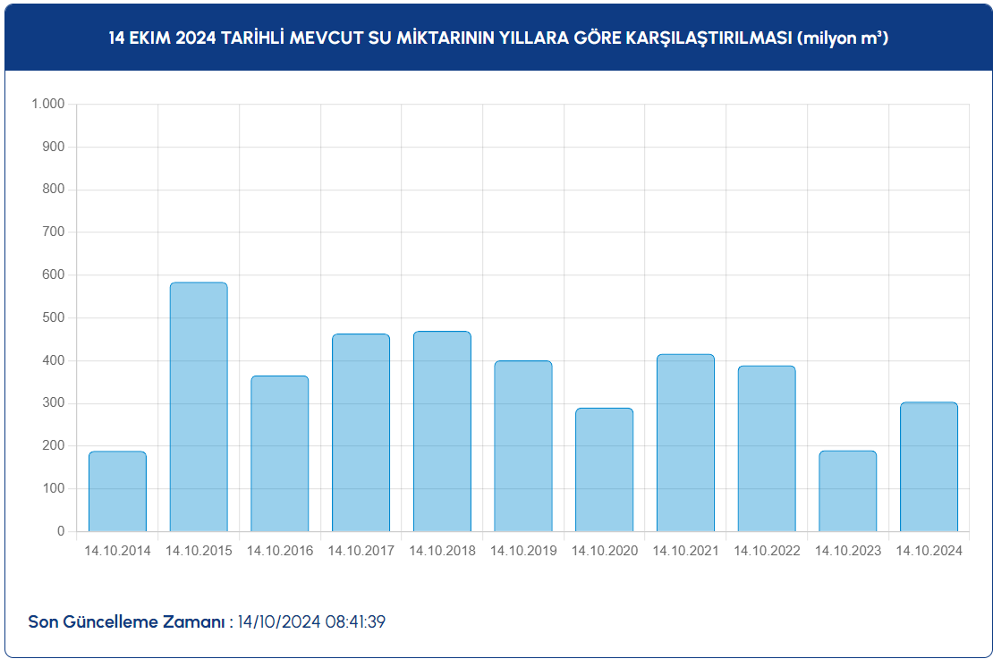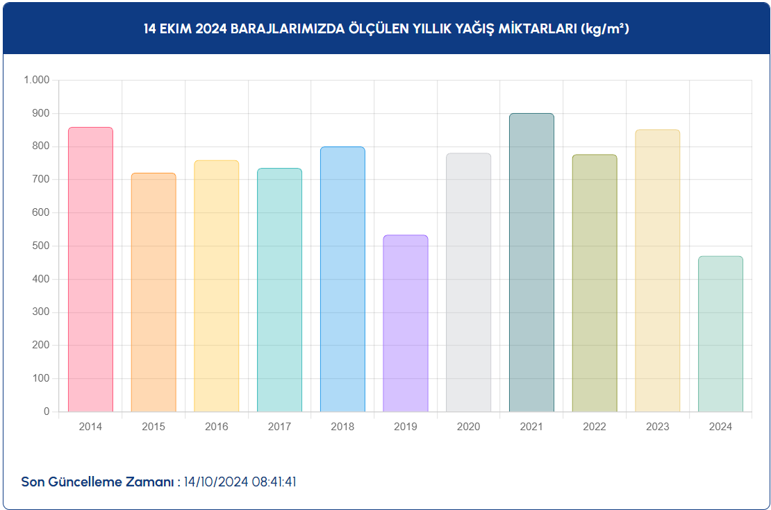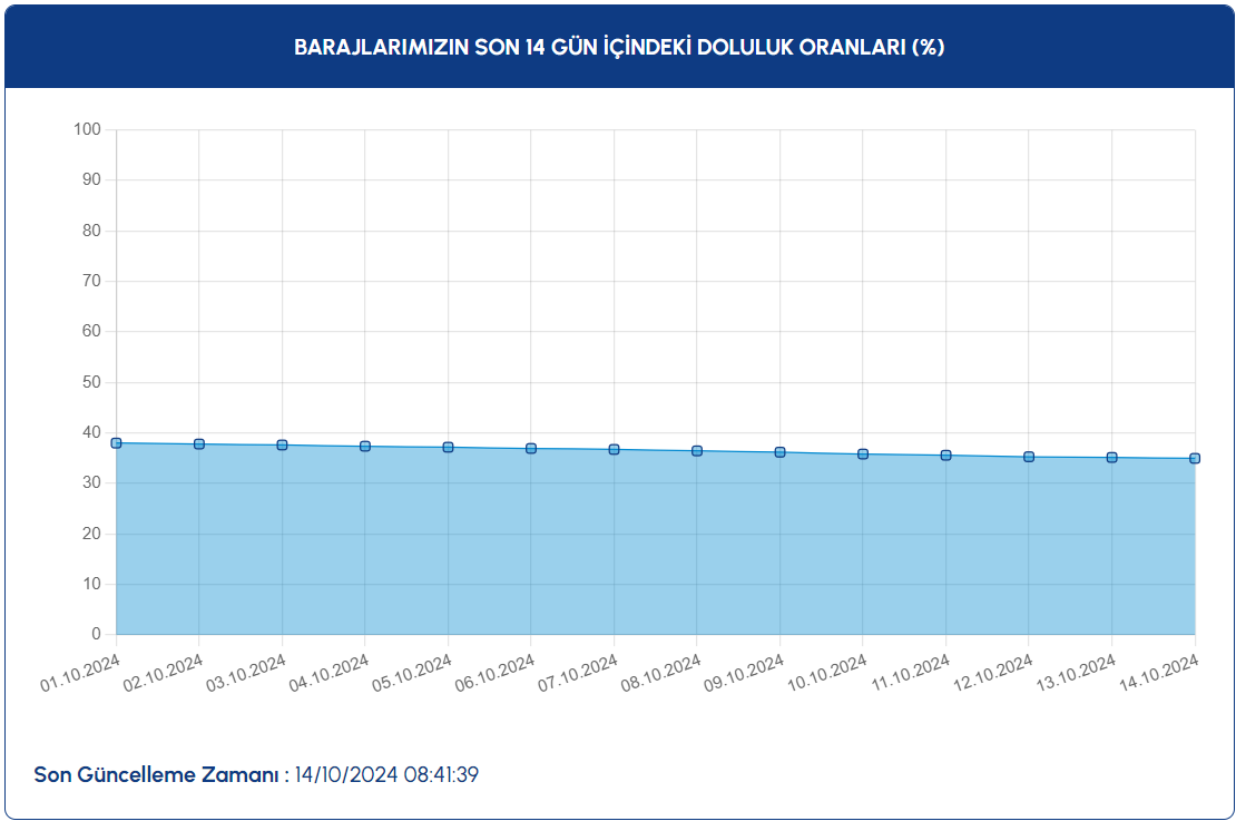 Son 14 gün içindeki baraj doluluk oranlarında düşüş gözlemlenmekte.