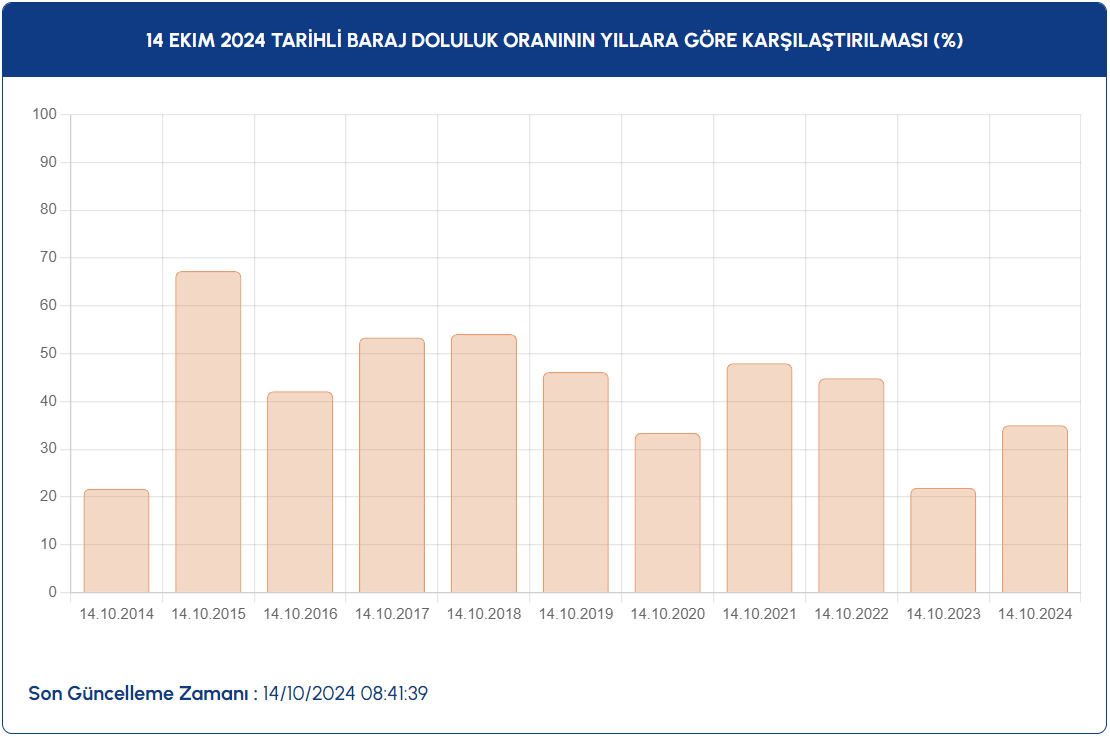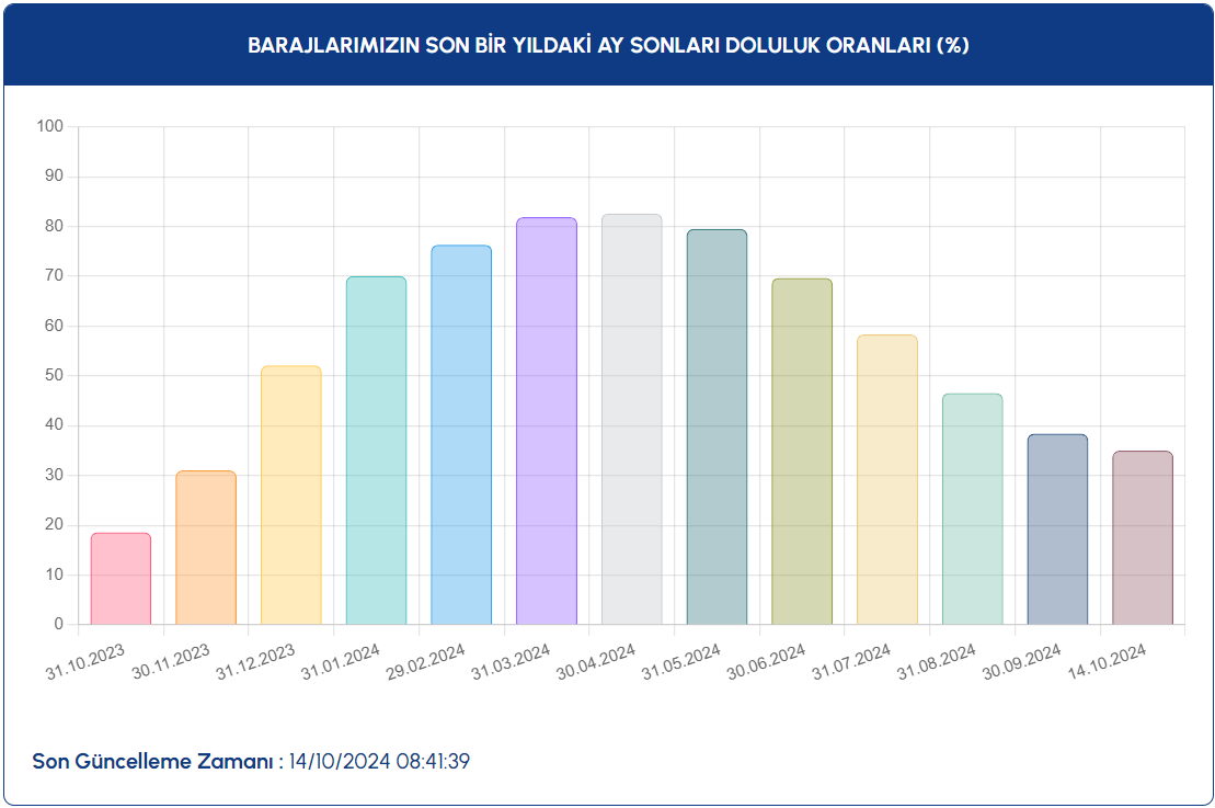 Bir önceki yılın aynı ayına göre baraj doluluk oranı yüksek seviyede görünüyor.