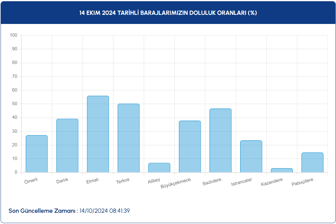 İstanbul'daki barajlarda doluluk oranı yüzde 34,99 olarak kaydedildi. Su miktarındaki düşüş devam ediyor.