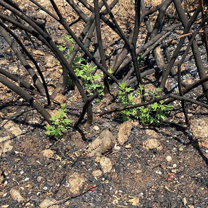 Bir taraftan yangından etkilenen yerleşim yerleri, diğer taraftan da bölgenin yeniden ağaçlandırılması için çalışmalar yürütülürken, ormanın doğal olarak kendini yenilemesiyle ilgili, bölgeden ilk sevindirici haber de geldi.