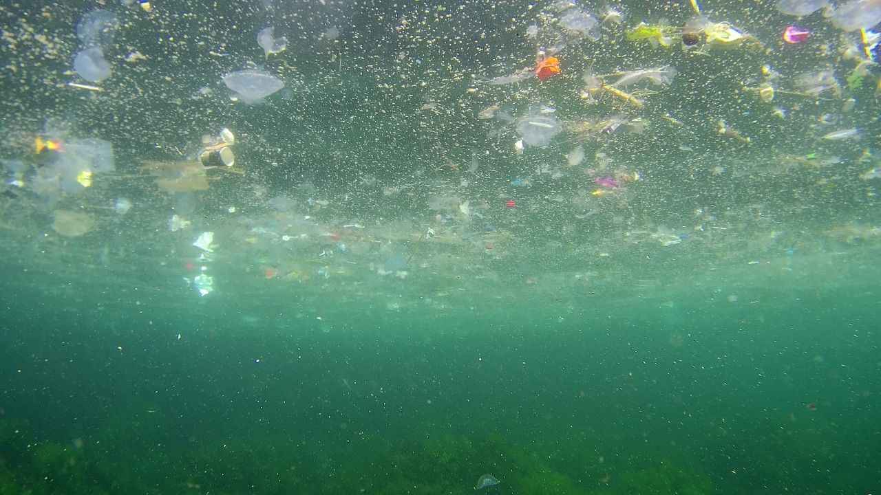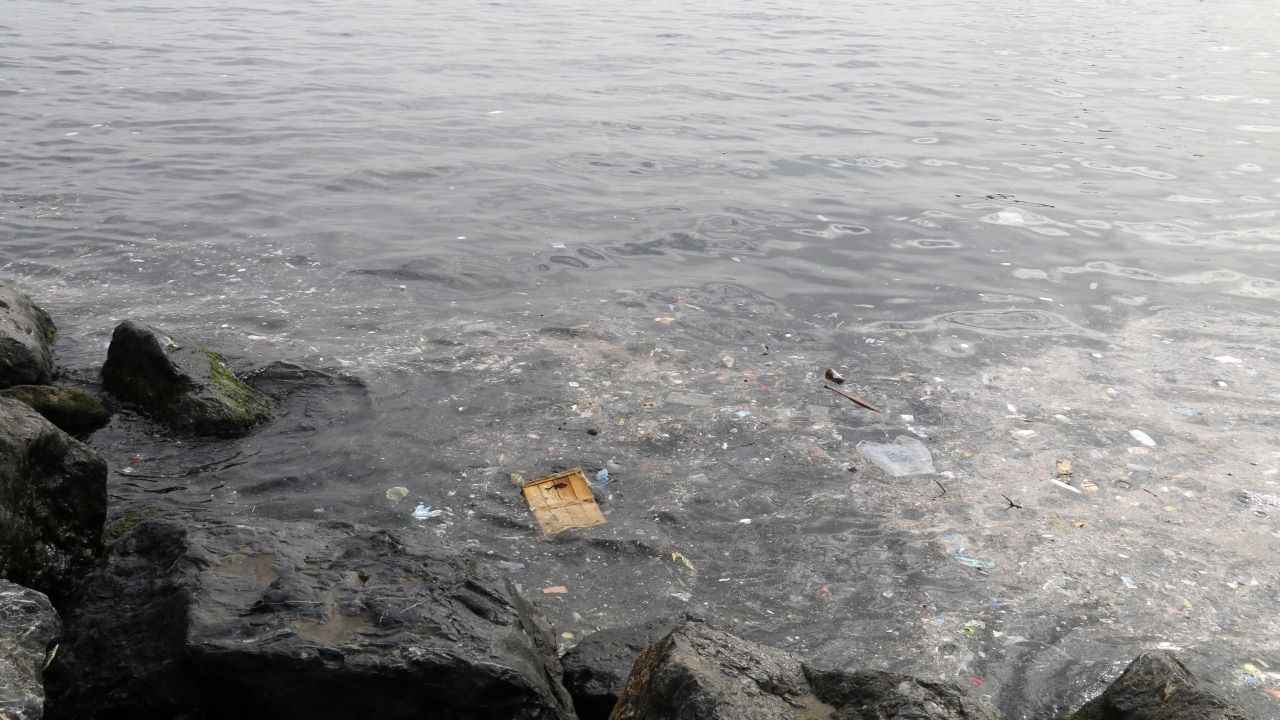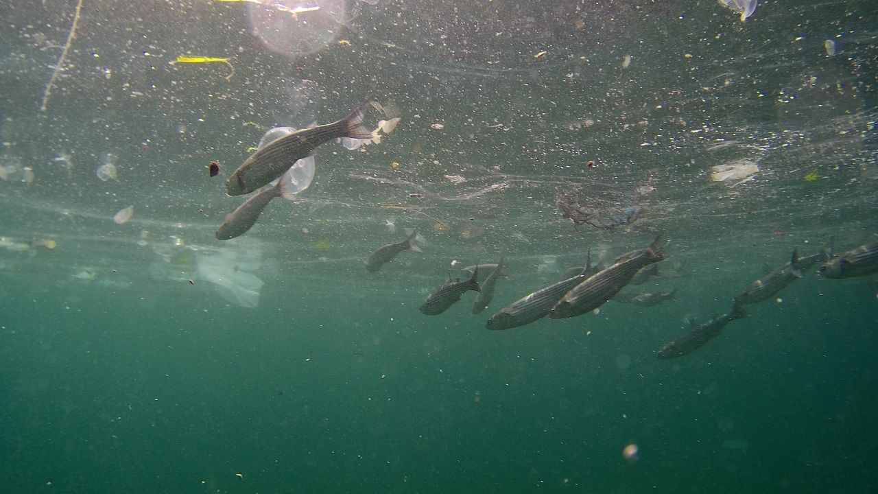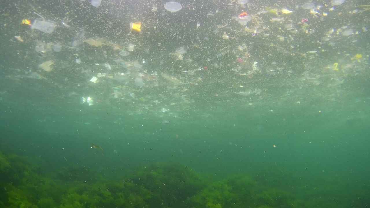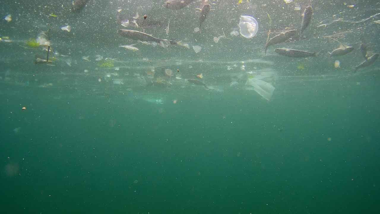 Görüntülerde maskeden poşete kadar birçok atık olduğu görülürken, bir yandan da balıkların yüzdüğü görüldü.