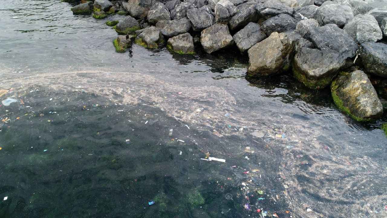 İstanbul'un gözde kıyılarından Yenikapı Sahili’nde, denize atılan çöplerin oluşturduğu kirlilik su altı drone ile görüntülendi.