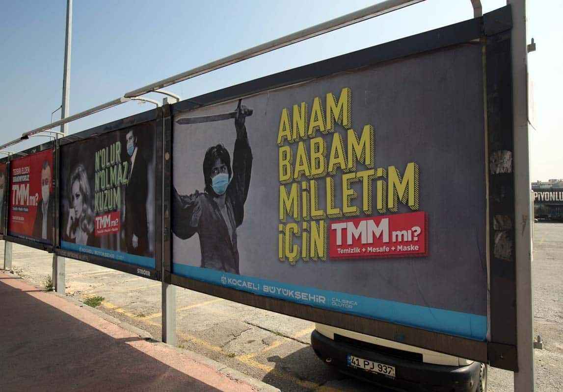 Sanatçıların maskeli fotoğraflarının bulunduğu ve "TMM mı? Temizlik, mesafe, maske" yazılı afişler, vatandaşlar tarafından ilgiyle karşılanıyor. Sosyal medyada da büyük ilgi gören afişlerde, gelecek günlerde farklı sanatçıların fotoğraflarının da yer alacağı bildirildi.