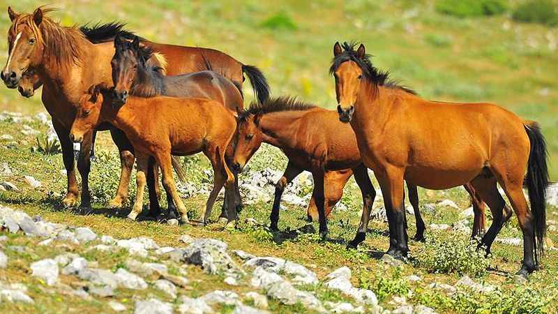 Hizmet ömürleri dolmuş olmasına rağmen yine de güçlü olan bu atlar, dağlarda sürüler halinde gezer.