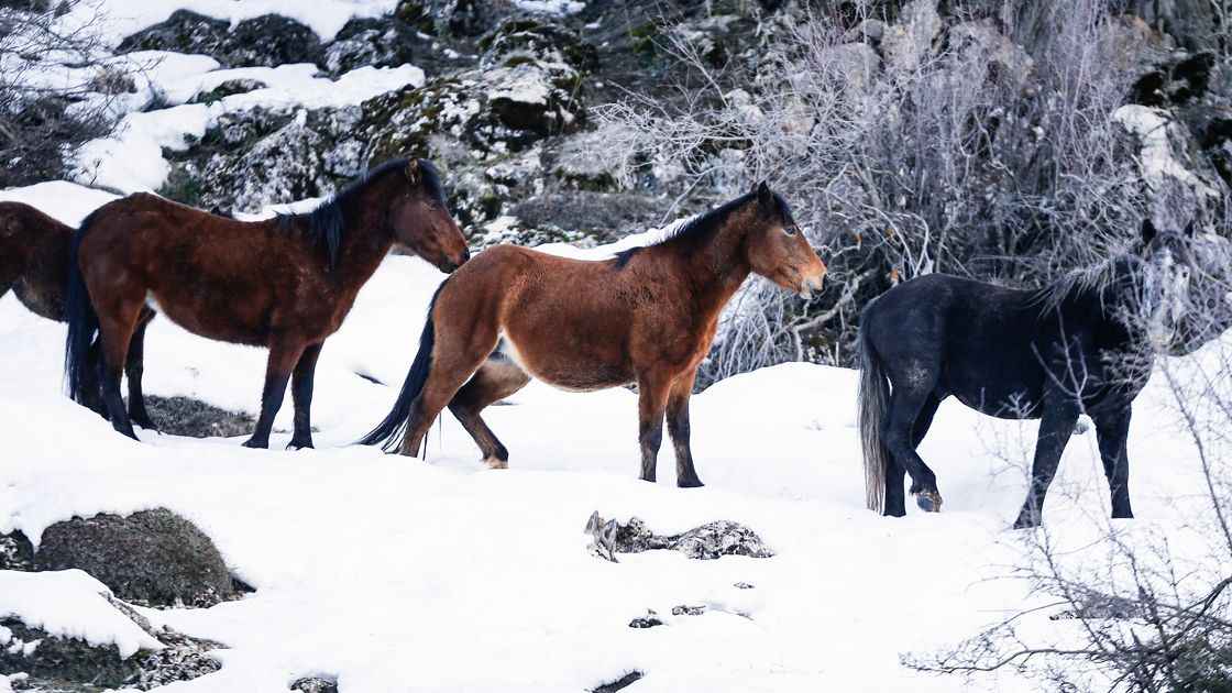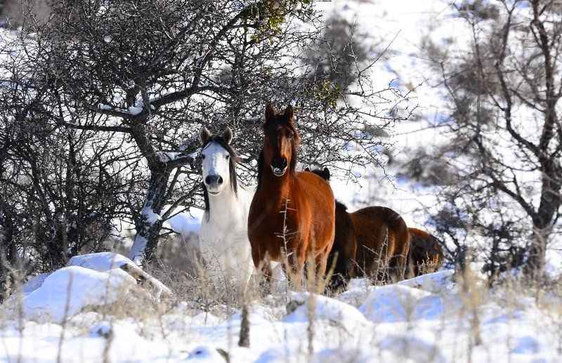 Atlar, kışın karlar altında kalan otlara ulaşarak yaşamlarını sürdürmek için zorlu hatta eziyet denilecek tarzda mücadele etmişlerdir.